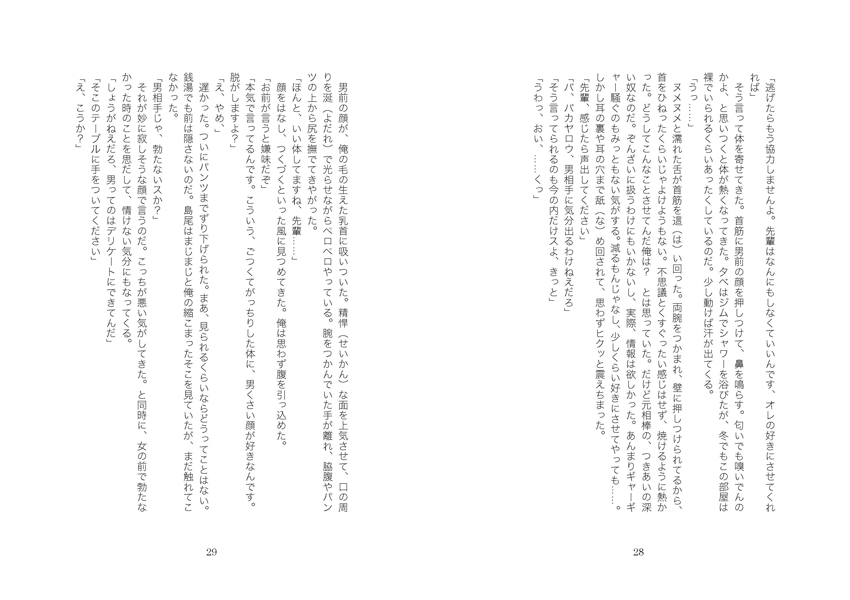 そして、今までの人生で考えたこともなかった男同士の交わりまで無理矢理に経験させられる。