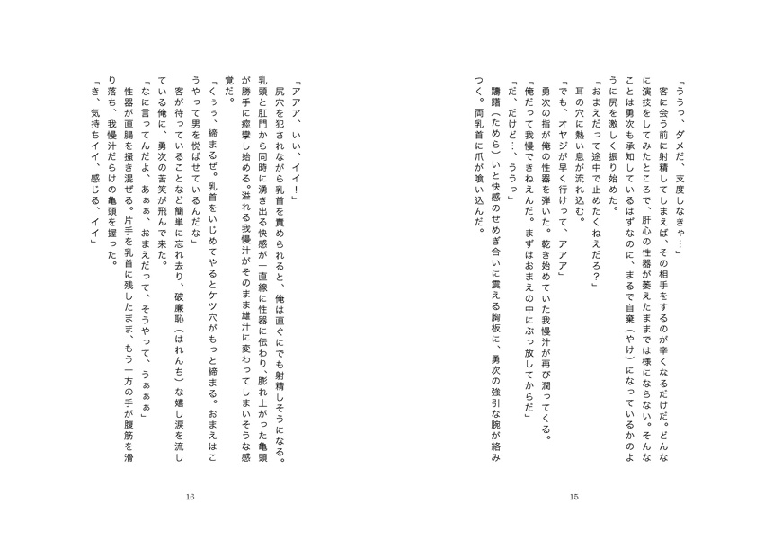 大都会の片隅で、男相手のホストとして日々暮らす勇次と駿介。