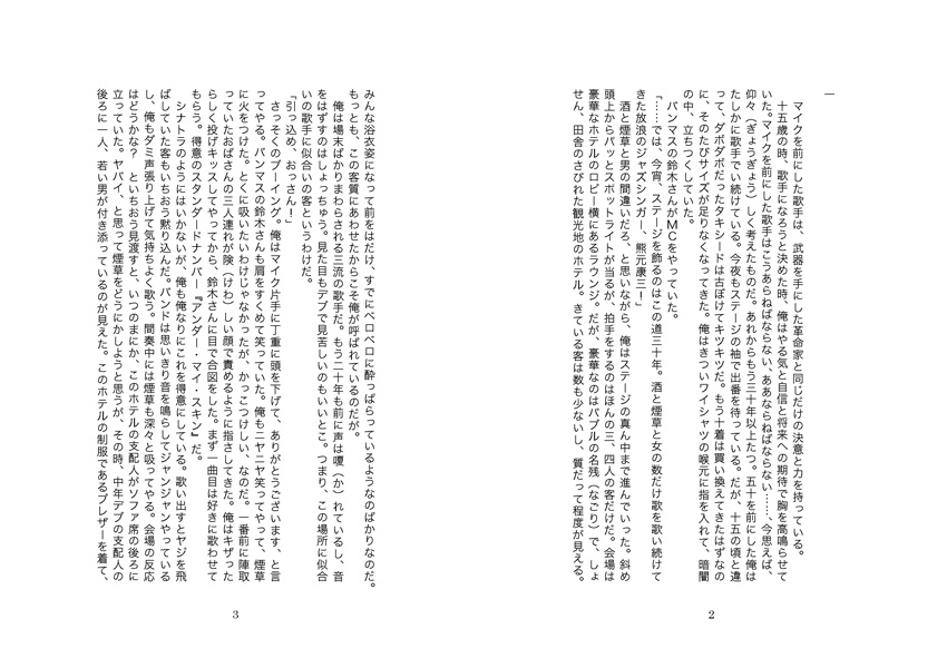 今は、田舎のホテルなどドサまわりをしながら惰性で歌うだけの毎日を過ごしている。