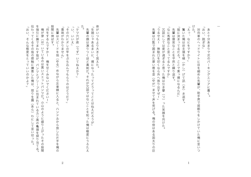 男の弱い立場につけこんだ先輩は、ある日の深夜、高速道路を運転中に、