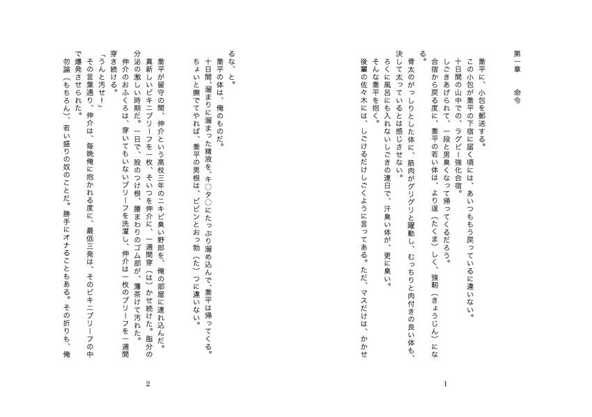 10日間の合宿で禁欲を強いられたた部員は、兄貴の命じるまま、年下の高校生にいたぶられ、蔑まれることになる。