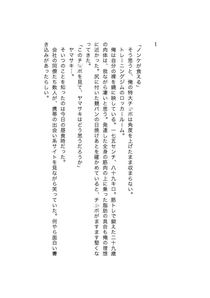 月刊ゲイ雑誌・G-men No.110に掲載された、男×男の露出小説を配信! 露出系小説を数多く発表する人気作家・