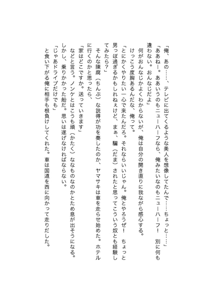 やがて車は、貨物船舶の停泊する埠頭の端に来た。そこはカーセックスの穴場で、健太郎を見るヤマサキの瞳は