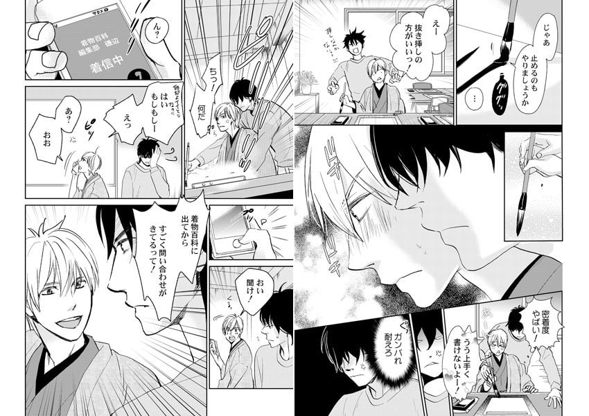 ある日着物雑誌の取材を受ける事になった翠山は不意の事故で結城から借りた着物を汚してしまう…。