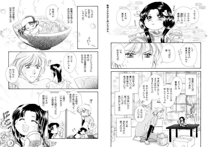 普段は手のひらサイズの可愛い花ちゃんだが、元の姿に戻ると人間と同じサイズに!
