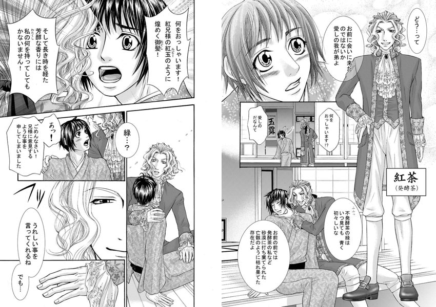 青く初々しい「緑茶」に愛しさゆえ意地悪をしてしまう芳醇な香りを身に纏った「紅茶」。