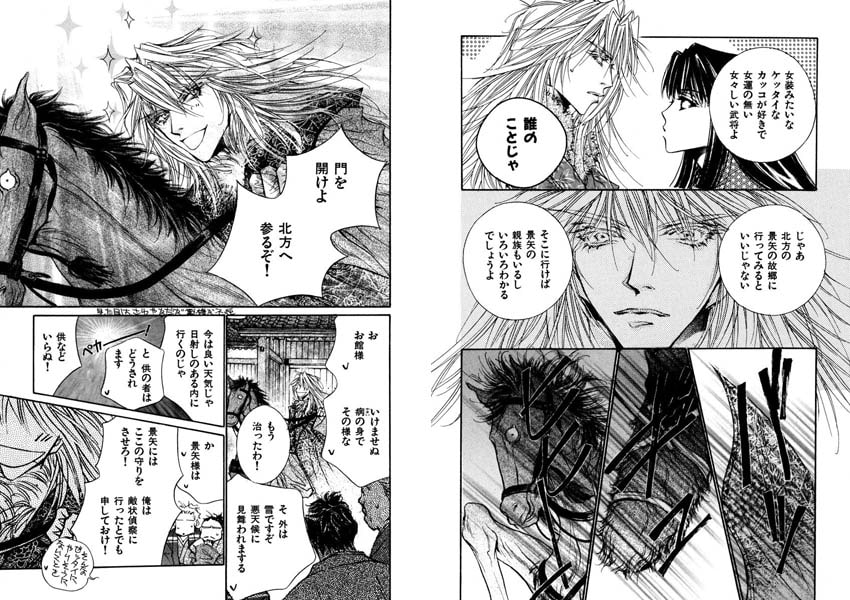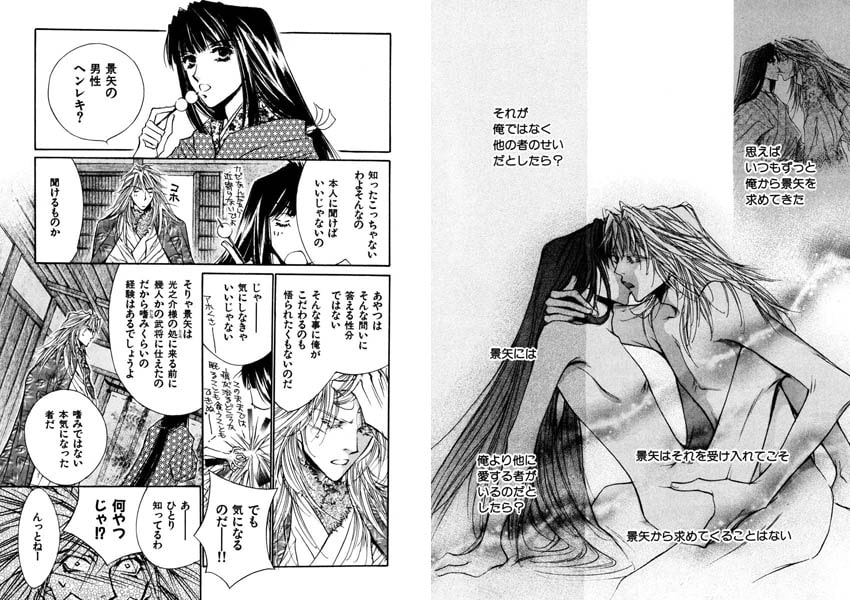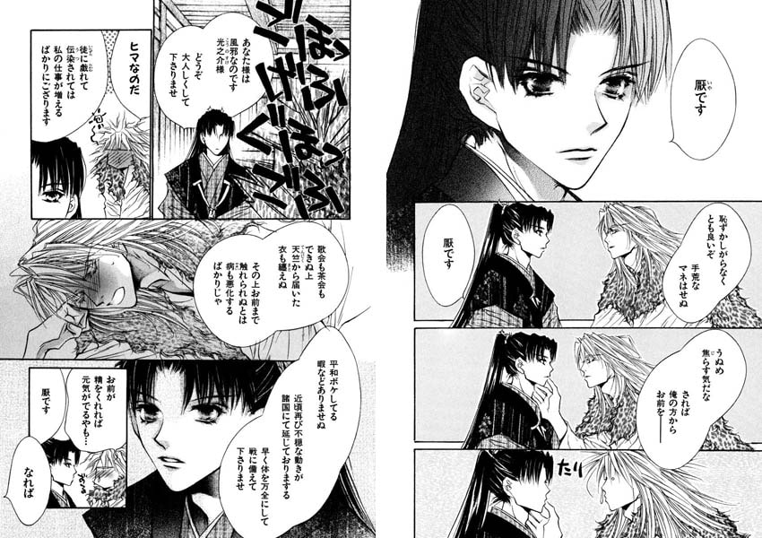 美形で戦嫌いの戦国武将・久我光之介と、小姓で恋人の景矢。