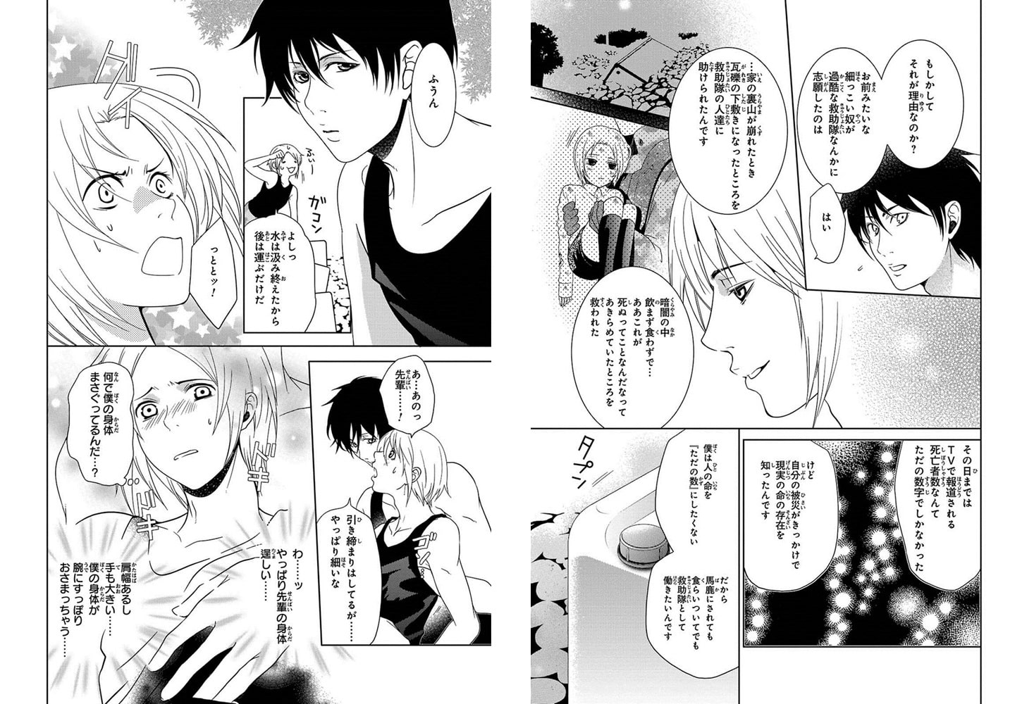ブリッジをした新人救助隊員・結城の尻に、先輩のアレがポンプみたいに大量のミルクを注ぎ込む。