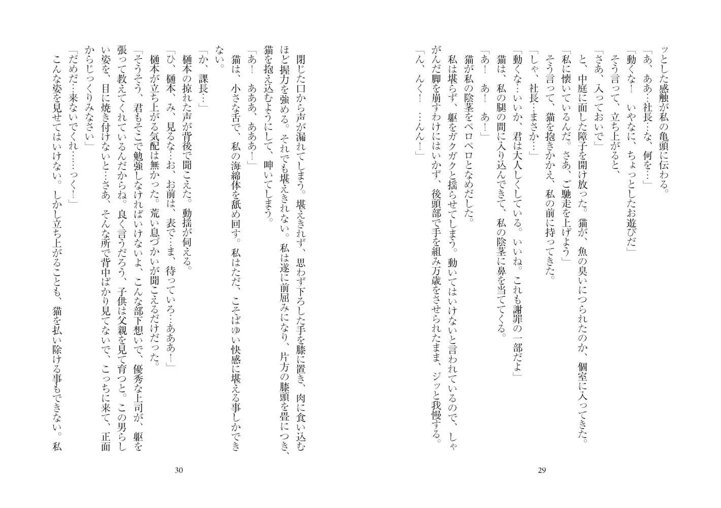 下着姿でのあられもないポーズ、陰部に猫をけしかけられての愛撫…そして射精…。