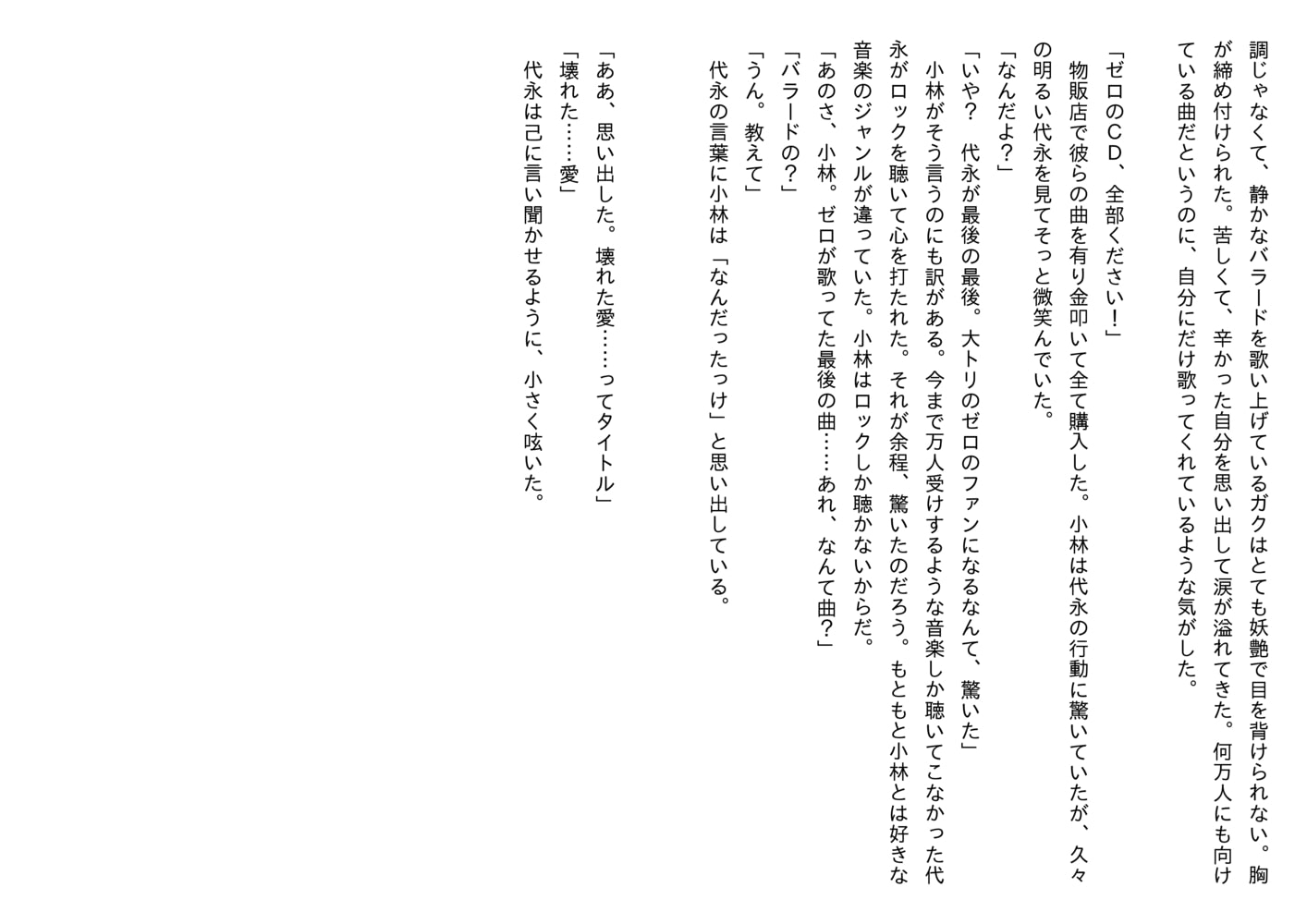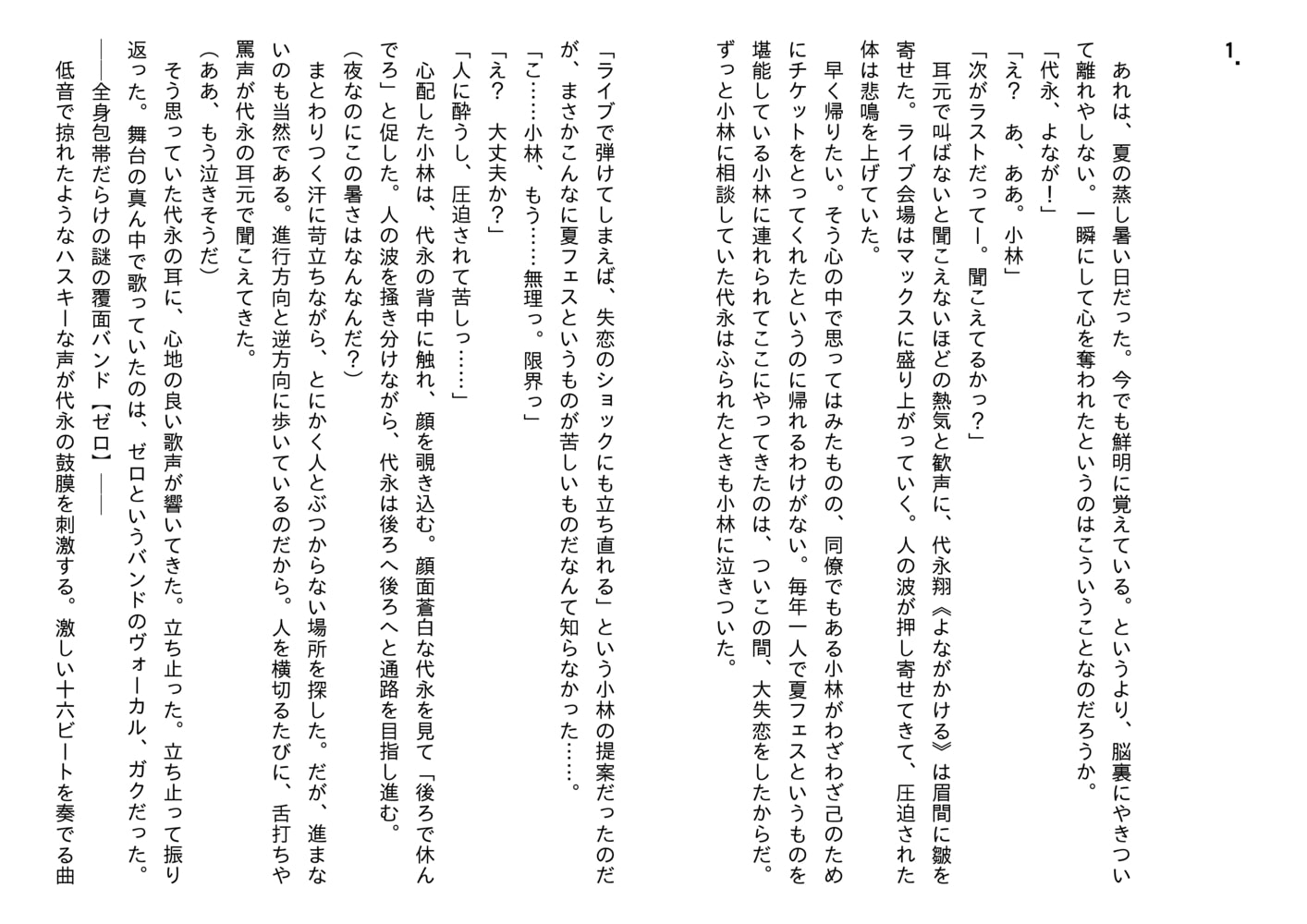 代永翔《よながかける》……【受】恋人に捨てられたばかりのゲイ。会社員。ゼロの大ファン。