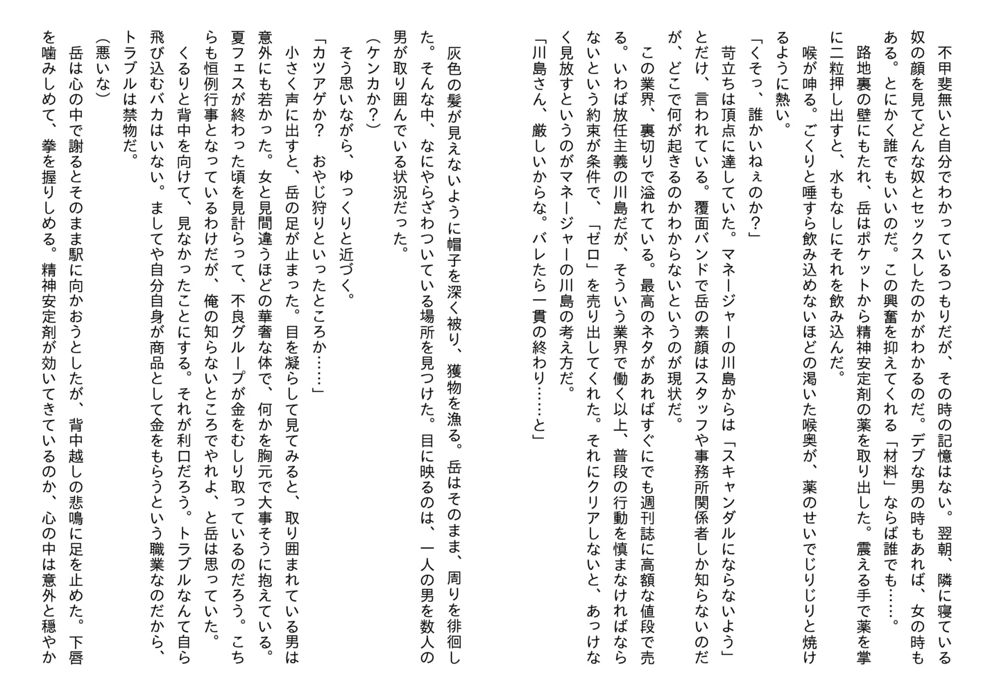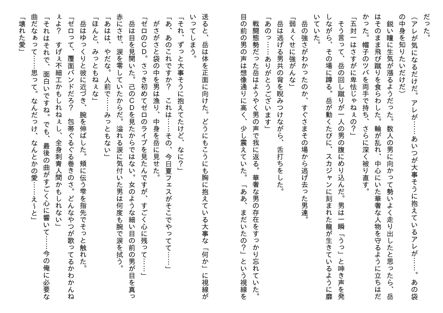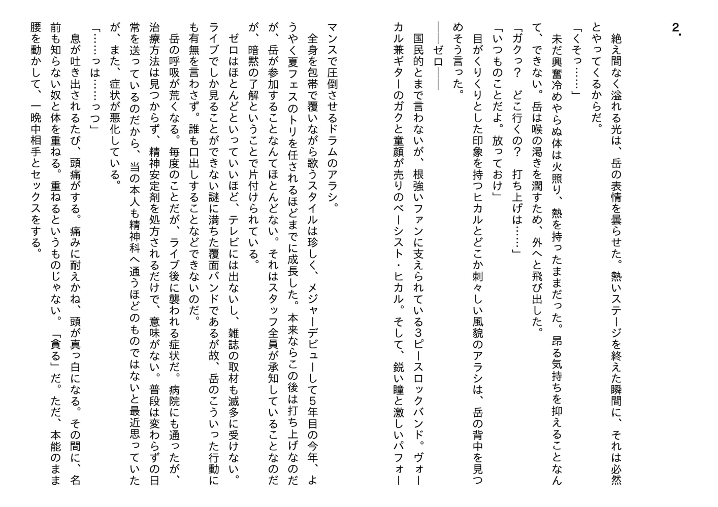 皇岳《すめらぎがく》……【攻】翔を助け、無理矢理襲った男。実はゼロのヴォーカル。