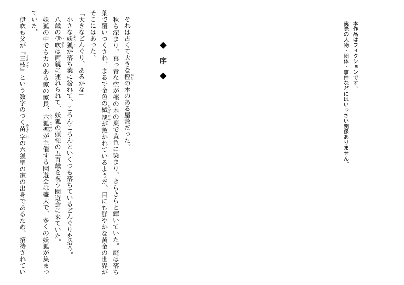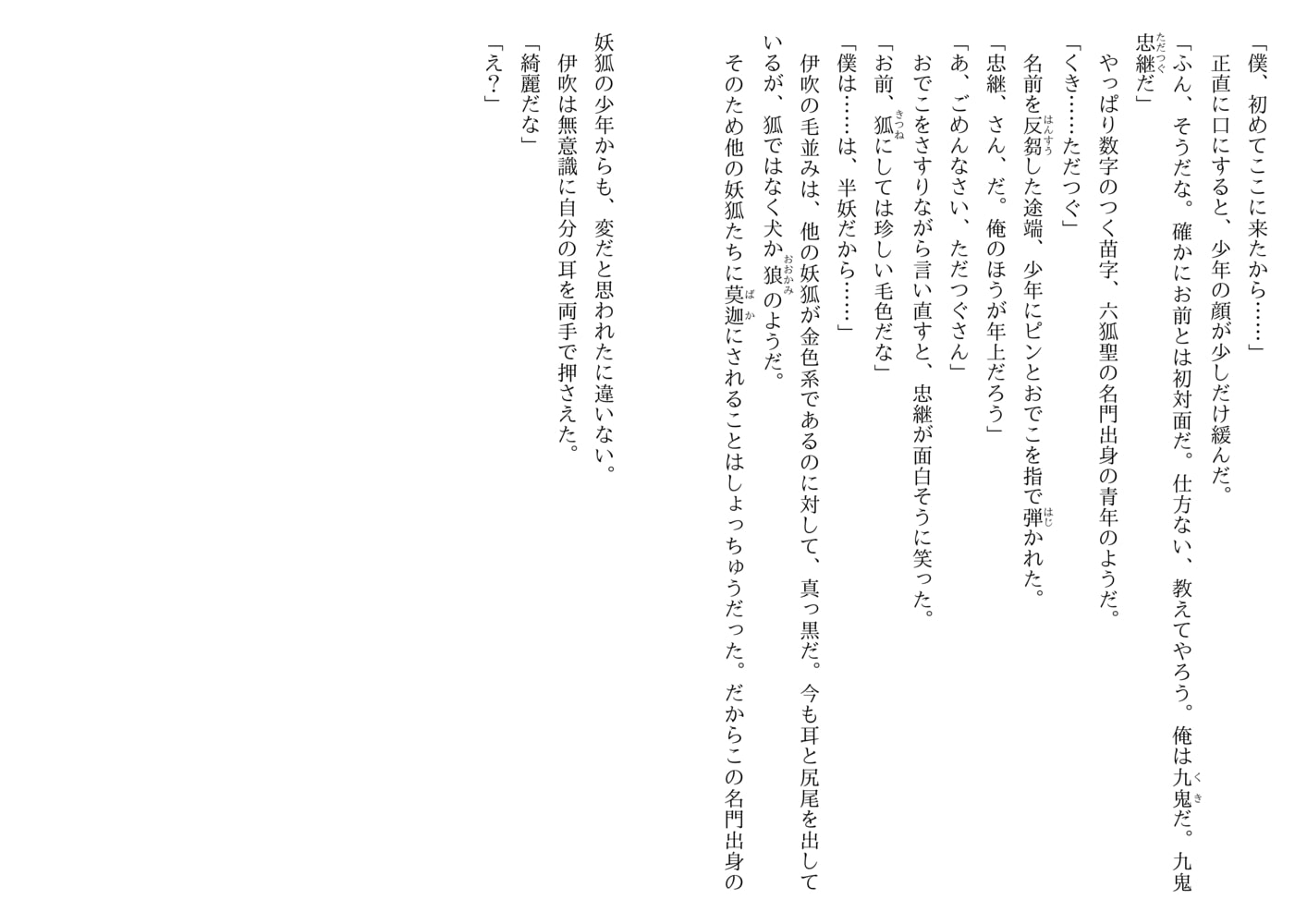 しかし今はその力を封じられ、妖狐一族・九鬼家の次期家長候補、忠継の秘書見習いとして修業中である。
