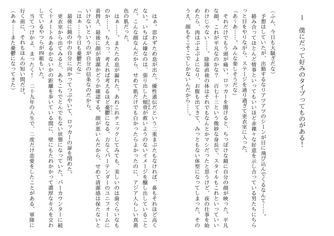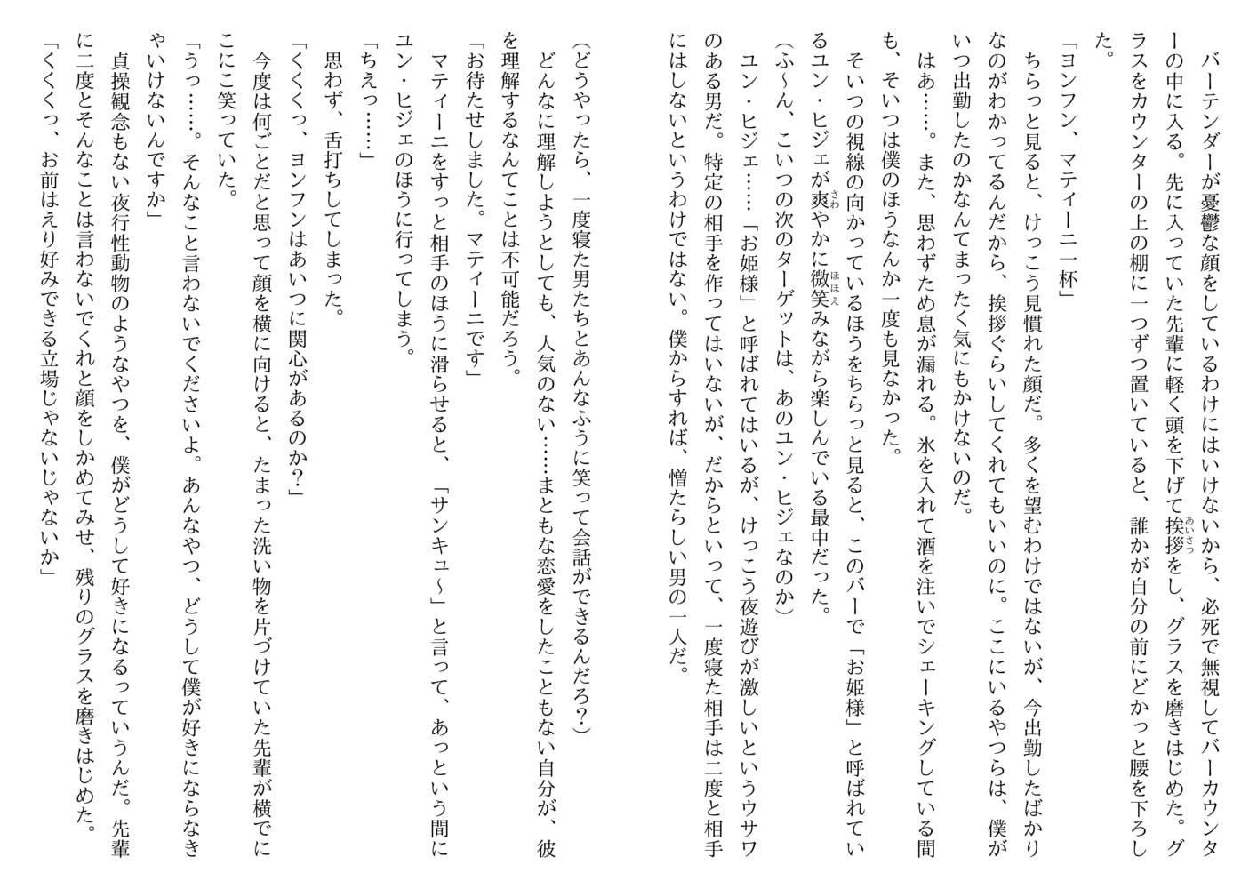 腕はいいがちょっと無愛想、至極平凡な、いやむしろブサイクといったほうがいいバーテンダー。