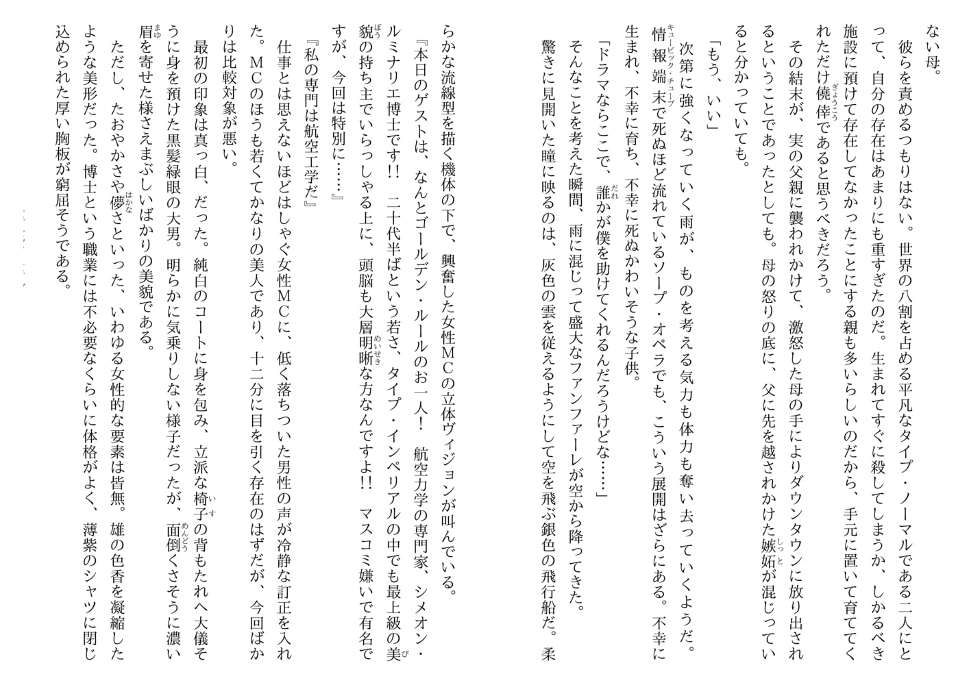 最下層の「孕む血筋(タイプ・コンセプション)」であるワスレナは、神と信じるディンゴに見捨てられた矢先、