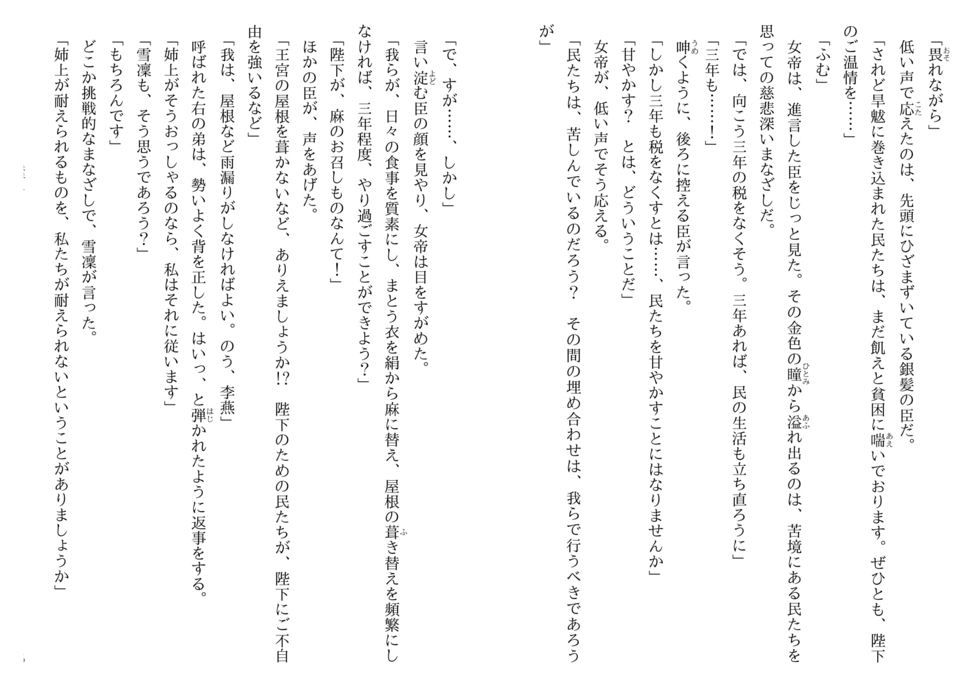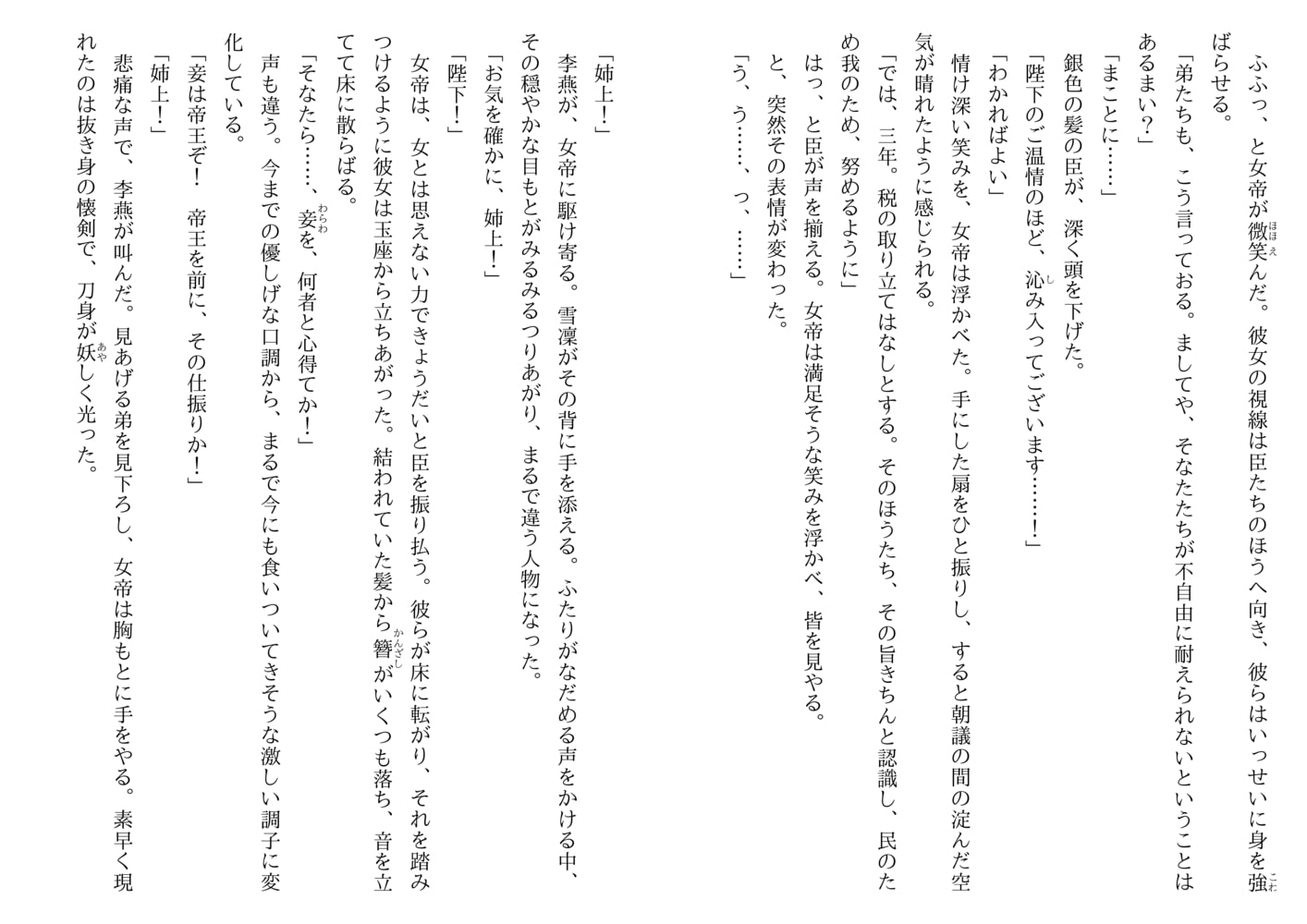 国を治める若き女帝玲蘭には殺された双子の姉、ゲイ(羽の下に廾)桾(クン)の魂が取り憑いており、