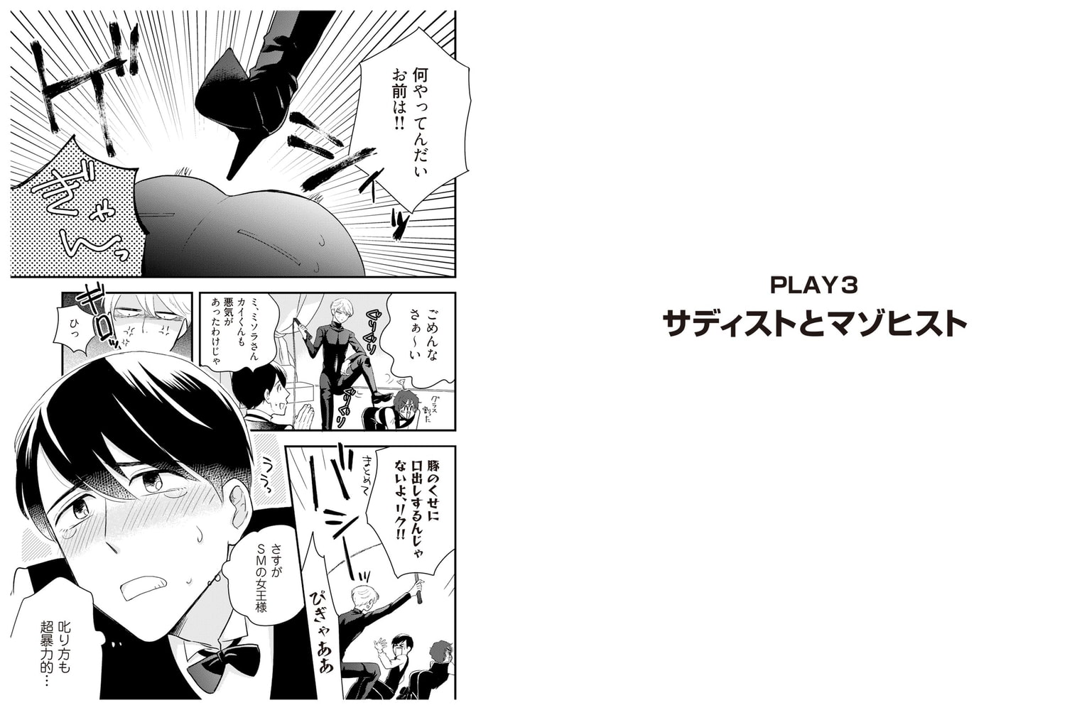 ハードプレイをする二人に対し、ミソラの鞭は優しくリクのお尻を叩く。