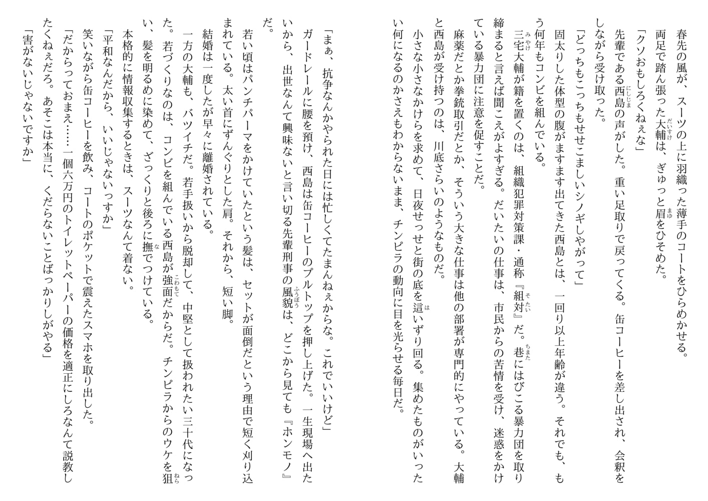 暴力団担当、通称『組対』の刑事、三宅大輔とその情報提供者である