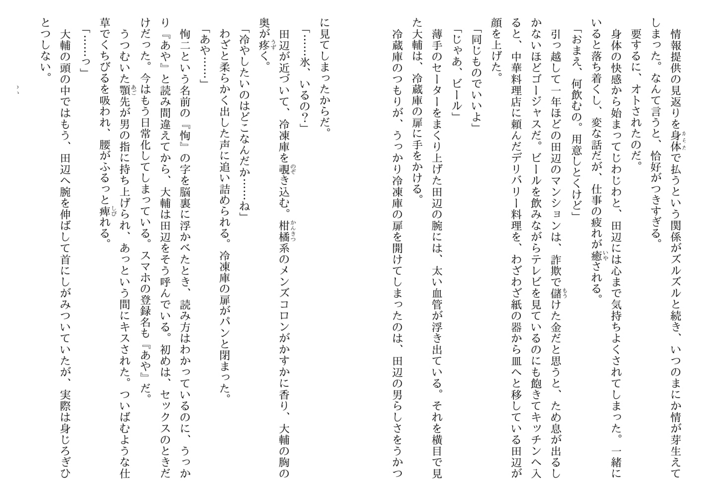 二人の仲が知られたら…自分は職を失うだけで済む。だが田辺は…。