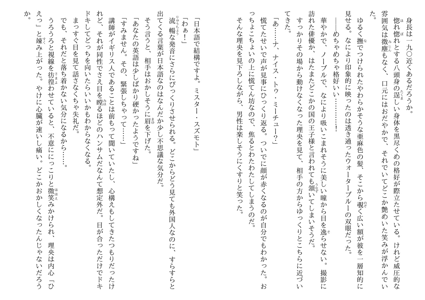 理央を迎えたのは八頭身の逞しい身体に亜麻色の髪、透き通ったウォーターブルーの瞳…