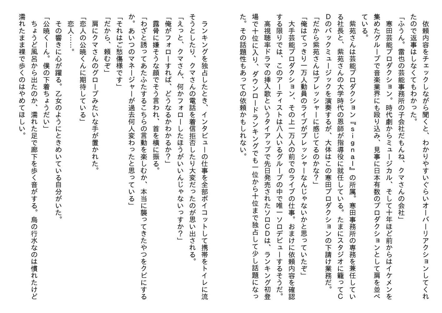 晴れて恋人同士になった二人だったが、ある日、紫苑がアイドルグループメンバーのソロデビューライブに参加することになる。