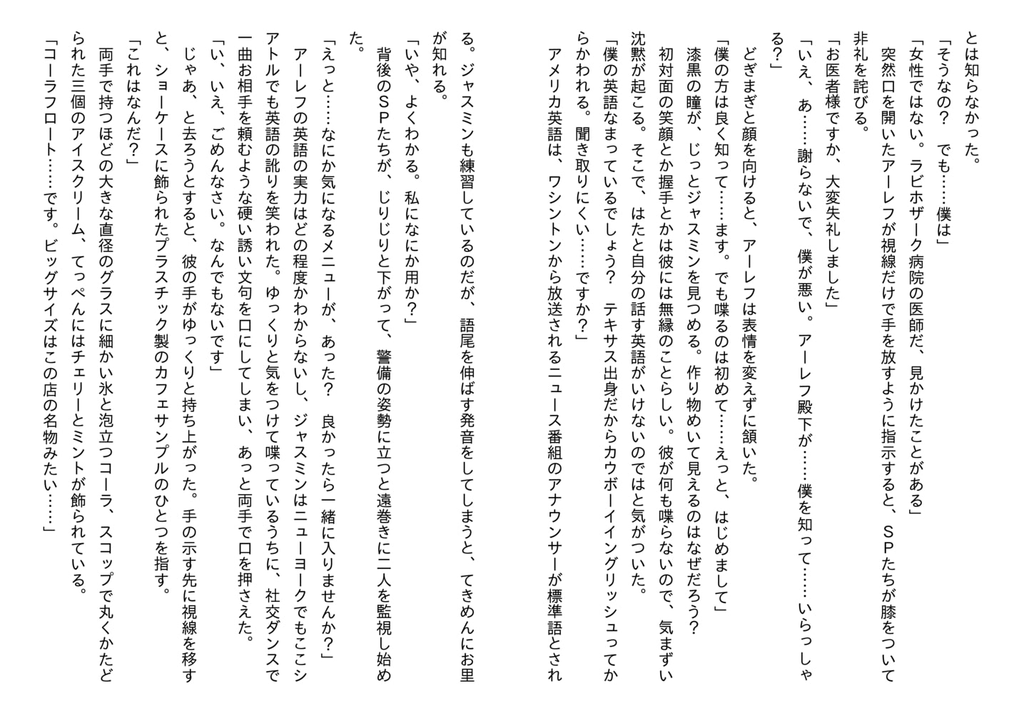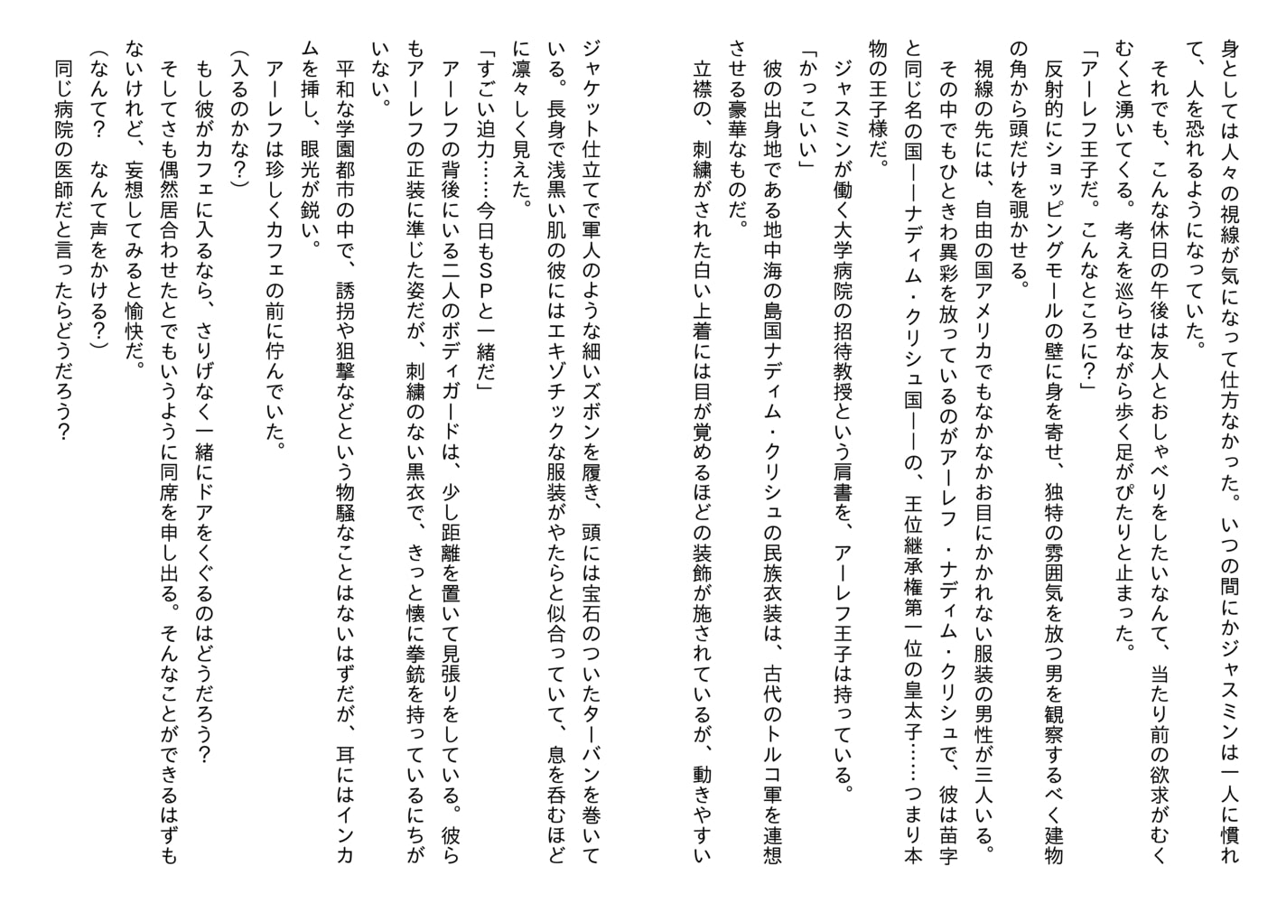 若き医師ジャスミン・ブルーと、ナディム・クリシュ国王位継承権第一位の皇太子アーレフ。