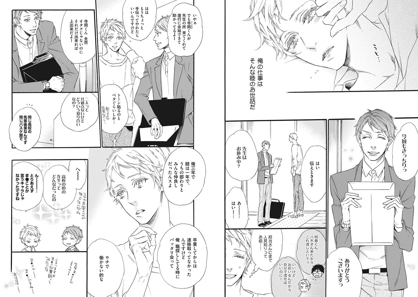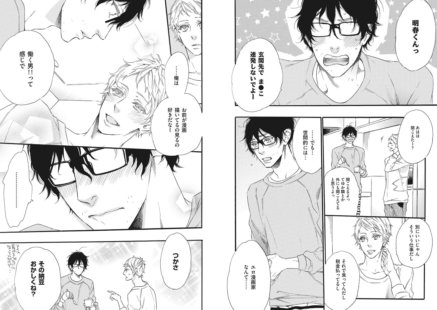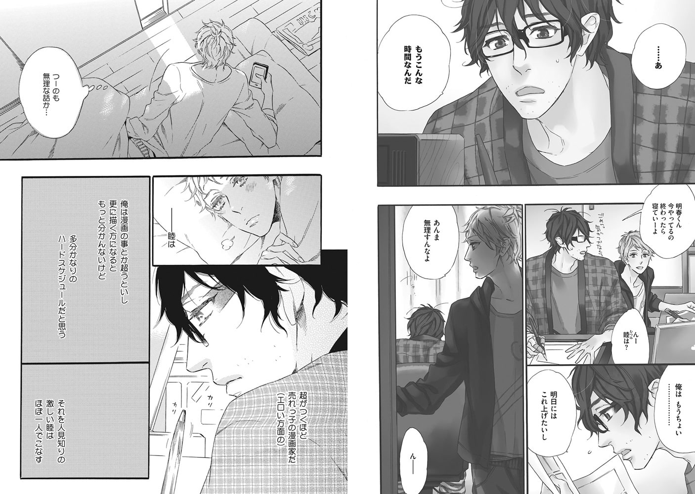 売れっ子漫画家・睦の世話を焼く明春。四六時中一緒にいる2人は、1人エッチする時間もない!