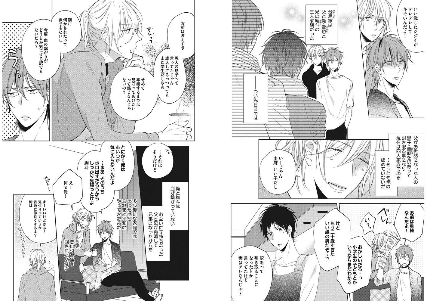突然できた義理の兄・圭麻が気に入らない大学生の雪也。