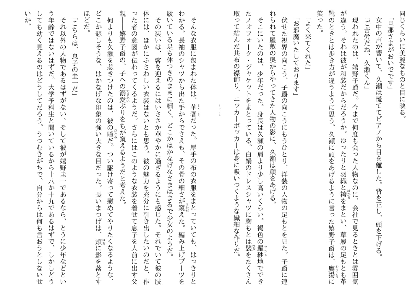 そこで久瀬は跡継ぎのひとり息子・圭一と出会った。