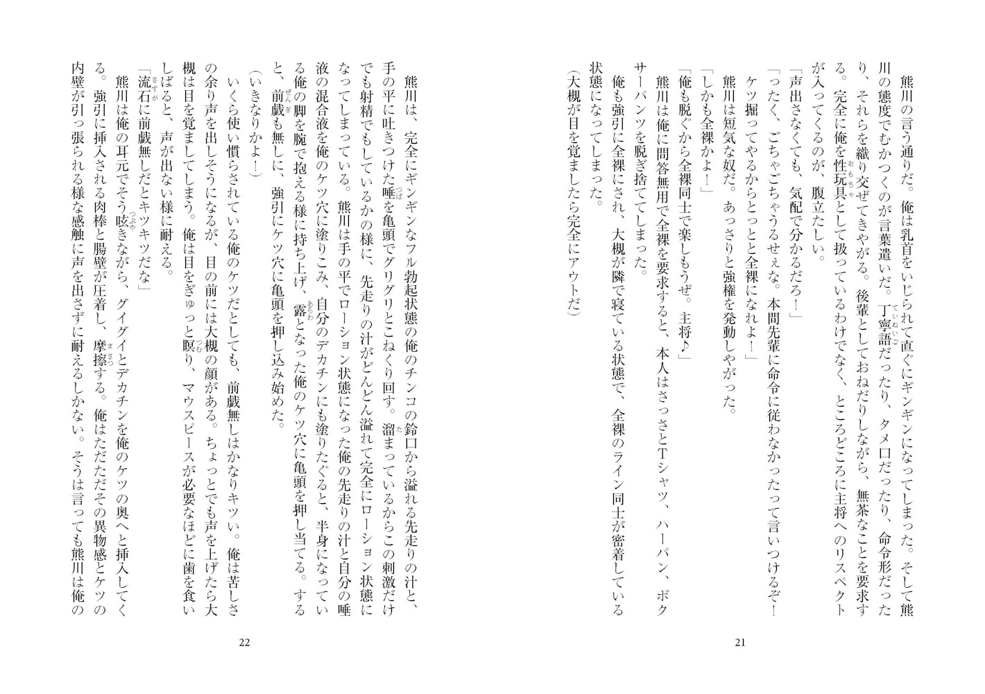 「『えっ!? しゅっ、主将! な、何してるんですか!』と、声を上げた。驚いて当然だよな。