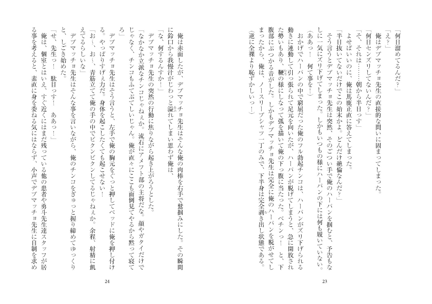 俺はうつ伏せの状態で身体を強張らせながら、勃起に耐える。まさかせっかく治療してくれているのに、やめてくれとは言えない。(本文より)」