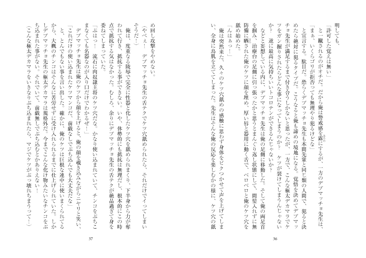 俺は、脚に触れるデブマッチョ先生の手が妙に嫌らしい事に、鳥肌を立ててしまった。