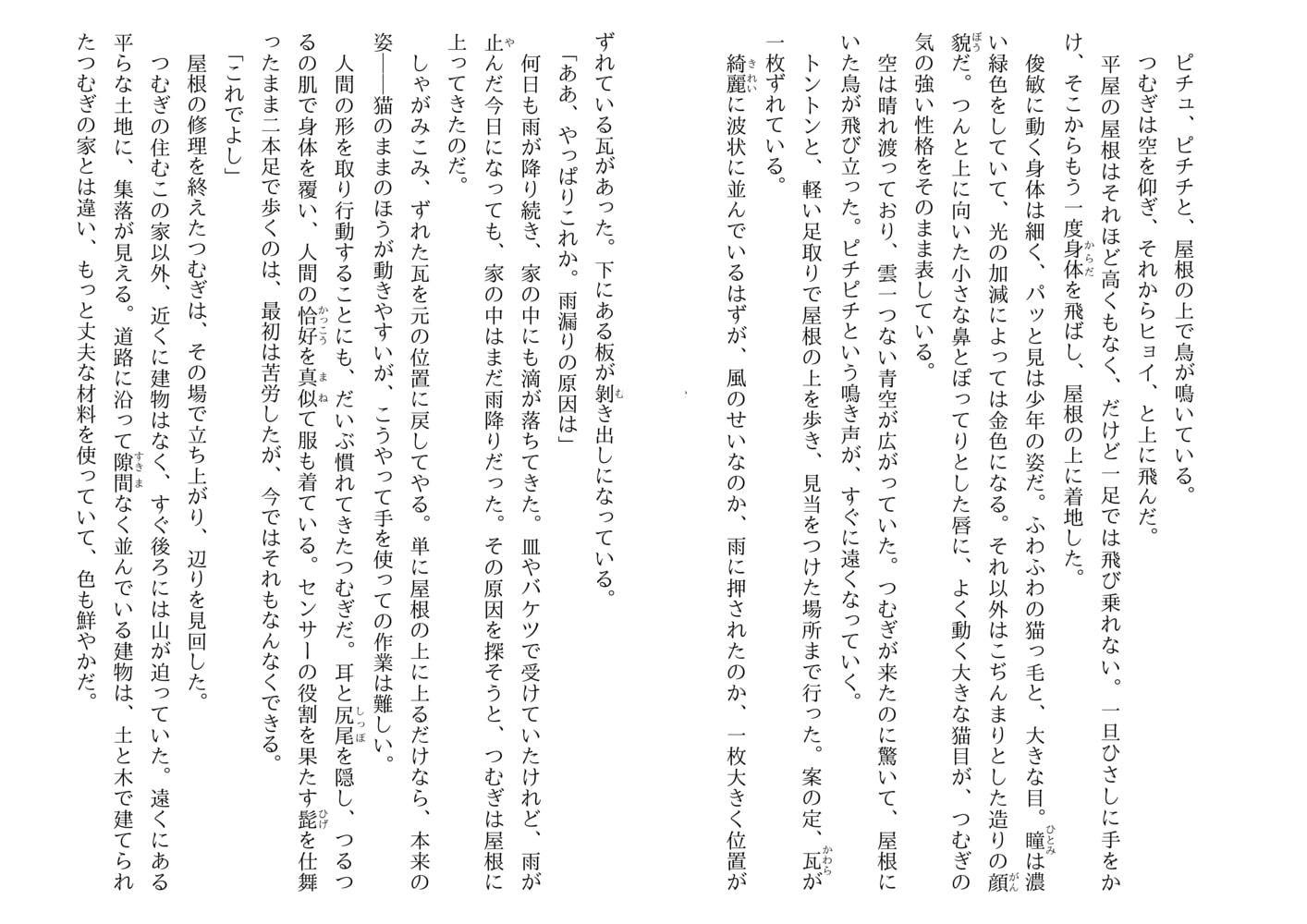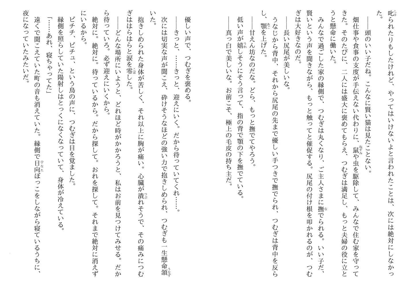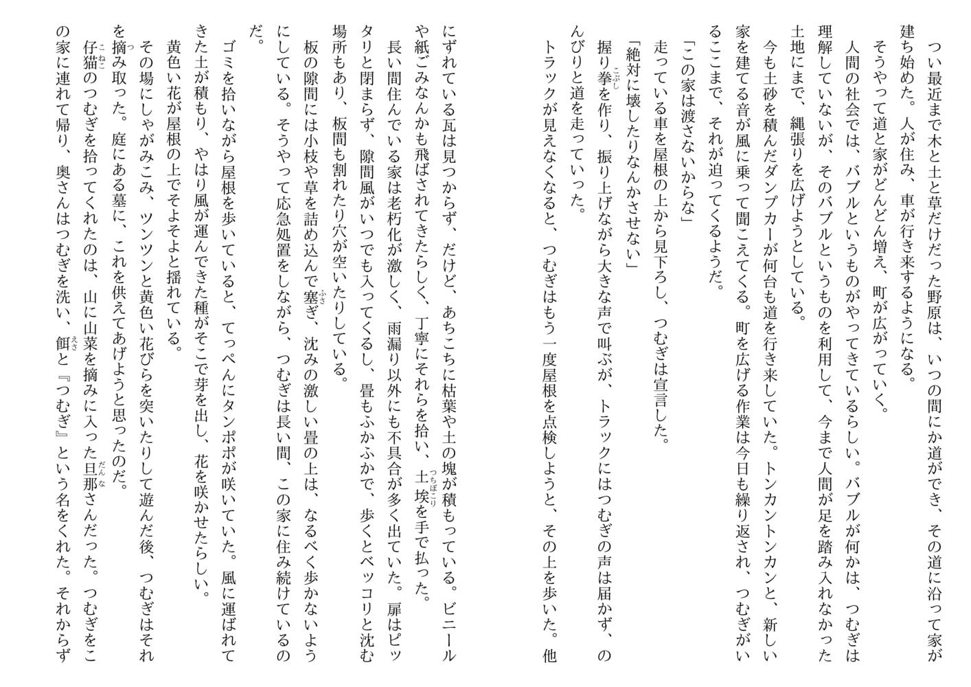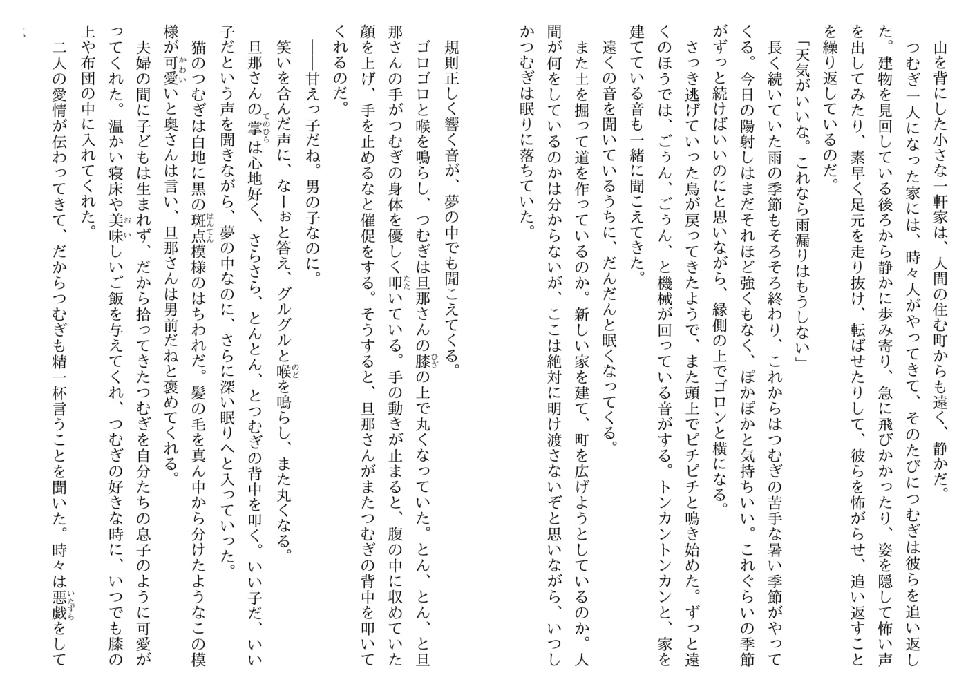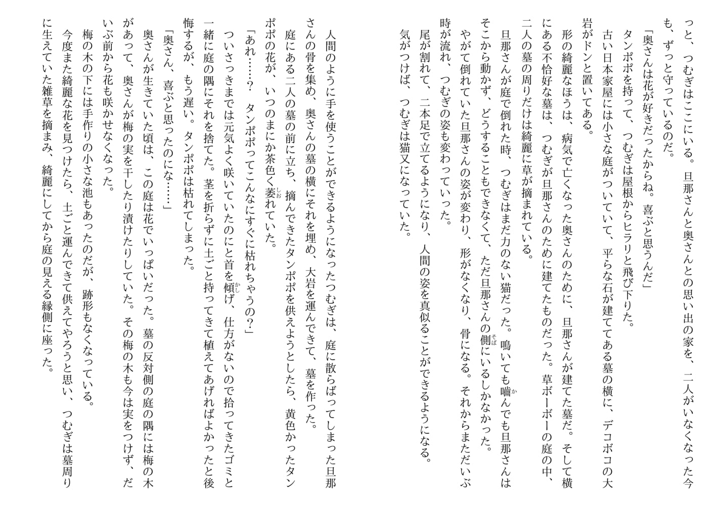 町外れの廃屋に棲むはちわれ猫のつむぎ。