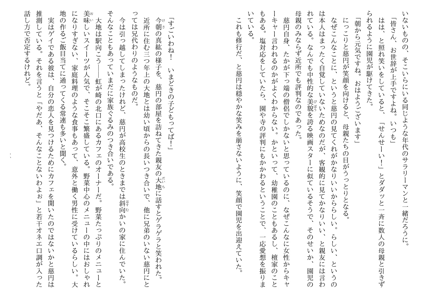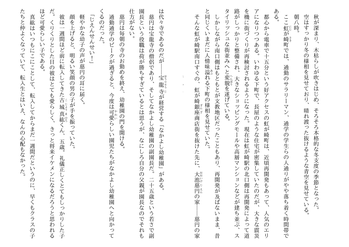 宝龍寺の僧侶、慈円は寺が経営する幼稚園の副園長。