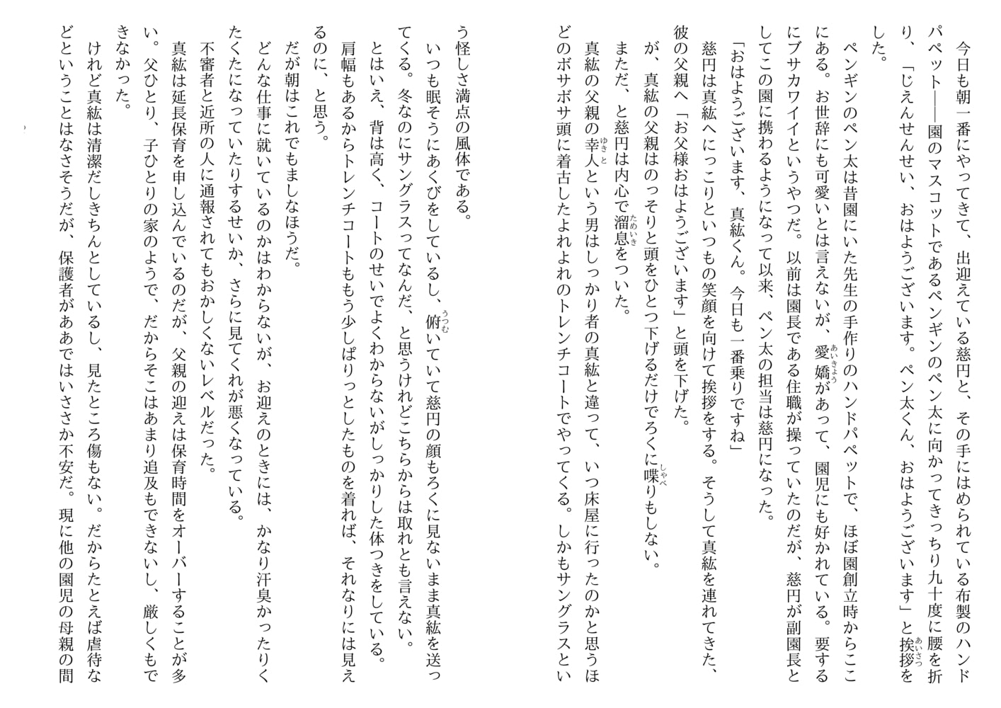 転園してきたばかりの五歳児、真紘の父、幸人――