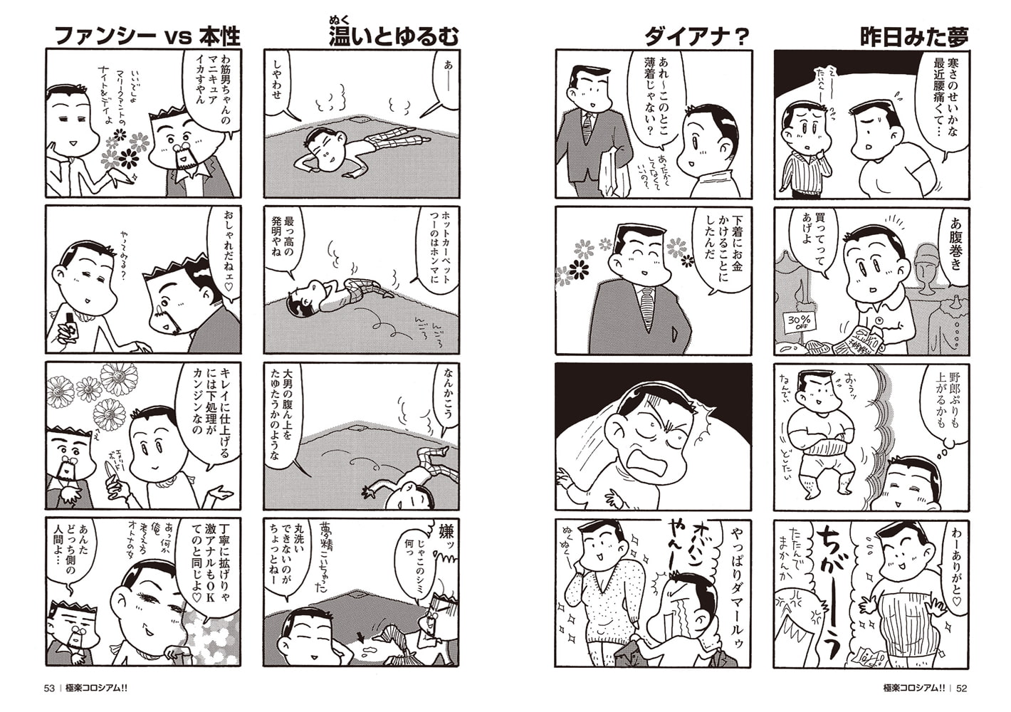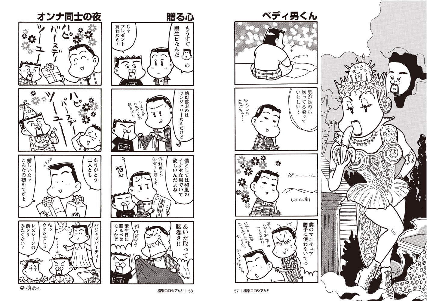 ゲイならではの下ネタ、恋愛あるある、生活の知恵、マニアックなフェチや趣味など、縦横無尽に盛り込んだ笑いの数々を、お求めやすい特別価格でたっぷりお楽しみ下さい! 各扉絵の、映画やCDジャケットのパロディネタにも注目!