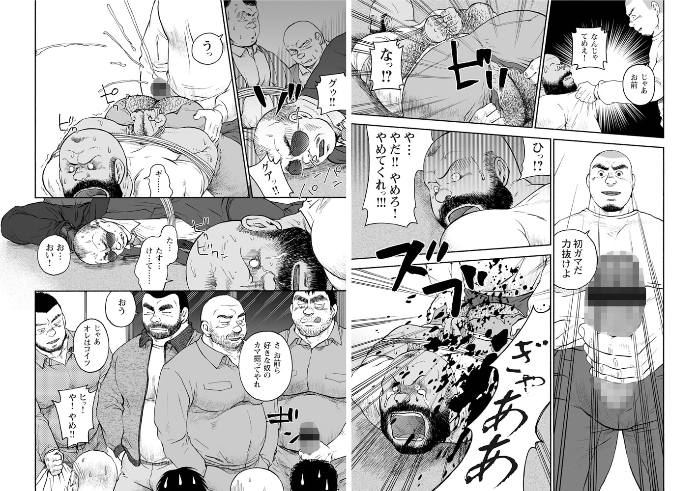 ある夜、将造の歓迎会が催される。全員、裸になっての開放的な酒盛りだったが、サオをいきり勃たせた男達が将造を取り囲む。歓迎会の本番として、複数の男達から責められ愛撫され、将造は興奮の渦に巻き込まれていく。将造の勃起に男がまたがり、アナルを○す快感を初めて知る将造。精液まみれの夜は更けていくのだが…。