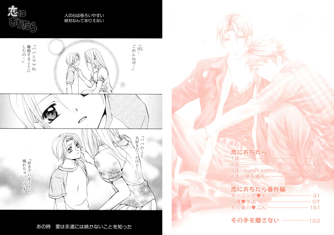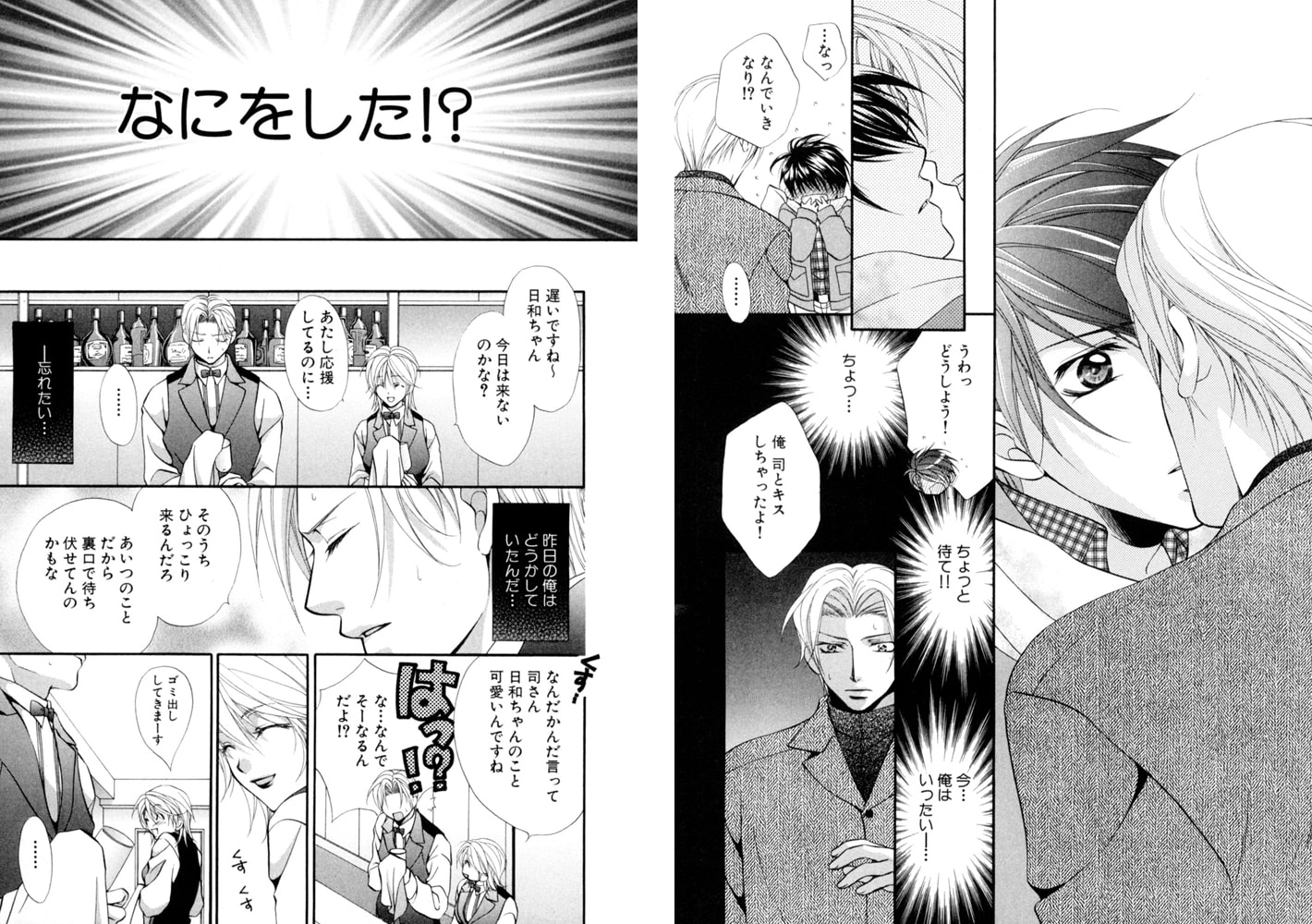 バーテンダーの司は、大学生の日和に告白されつづけるものの、いつも返事は「ノー」。愛は永遠に続かないものだと知っているからだ。でも、絶対に別れたりしない運命の相手を密かに待ち望んでもいる。日和を運命の相手とは思えず適当にあしらっていたけれども、無意識のうちに日和にキスをしてしまった司は──!? 司&日和のスイートラブv