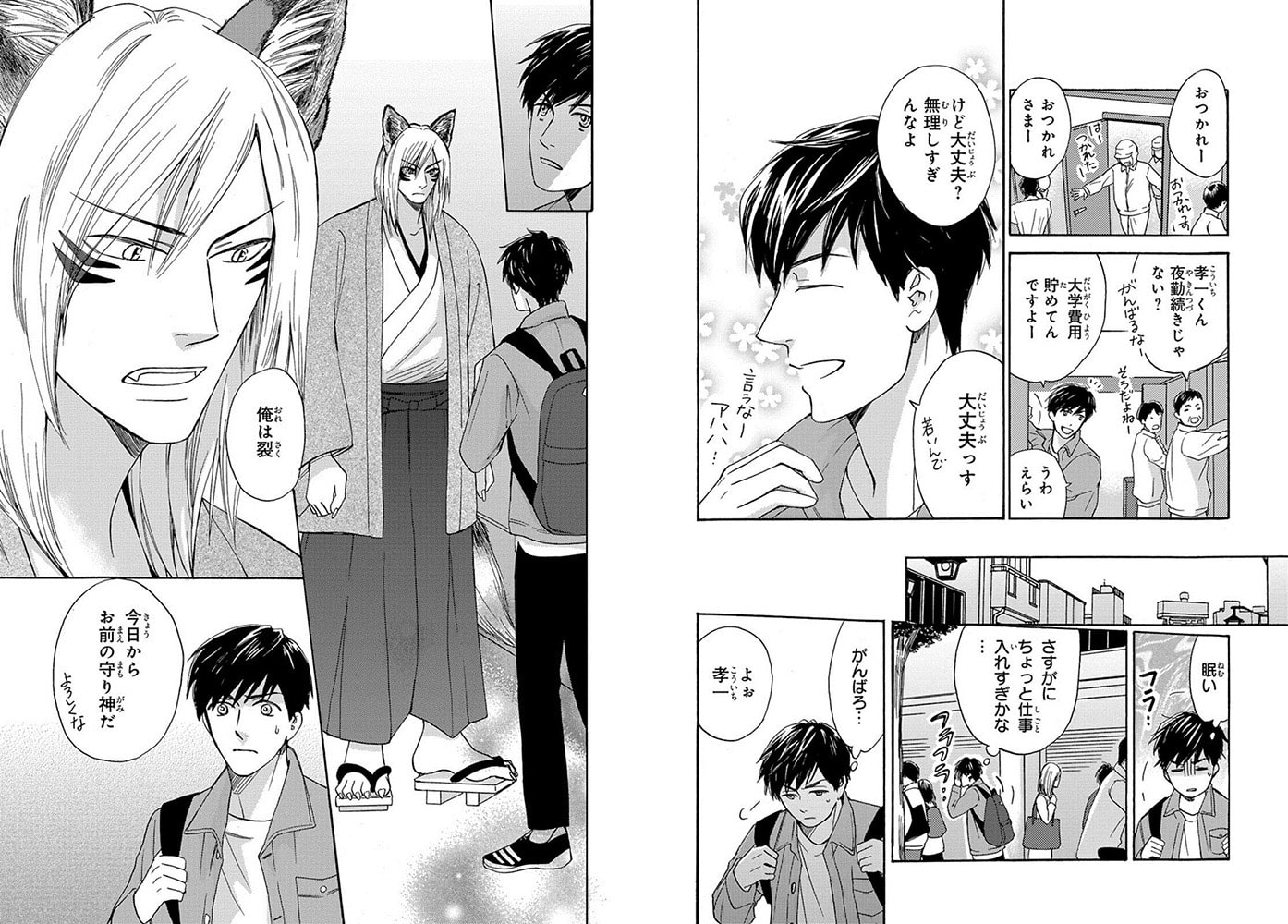 『他の人には見えないマイペースなお狐様×強がりで心を閉ざした孤独な青年』