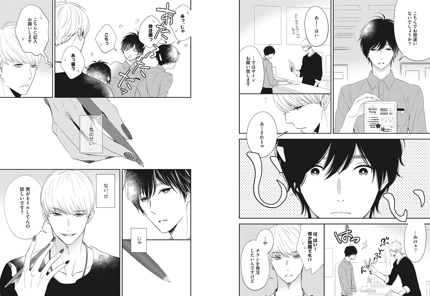 ゲイのネイリスト・マキは、仕事で立ち寄った店で働く紺野と出会う。 どうやら指フェチらしい紺野に、いきなり「美しい」と言われ、恍惚とした表情を向けられる。そんな彼に興味を抱いたマキは、見るだけで満足なのかと迫り、口内を指で嬲り犯してしまうがーー…? 【僕は美しい手に欲情する変態。】
