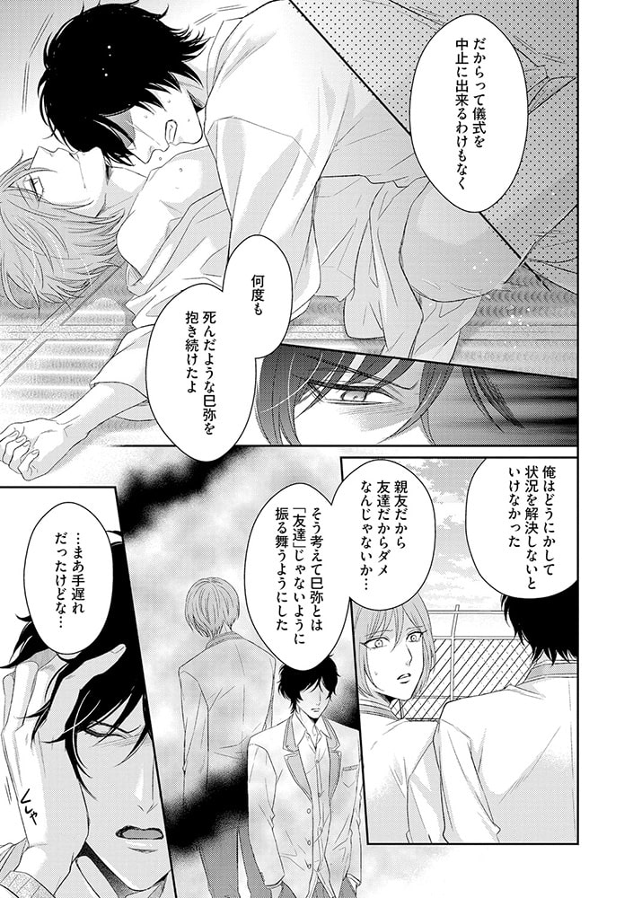 いつものお参り中、見知らぬ子どもが神社の危険区域に立ち入っているのを見かけ、注意しようと追いかけると、突然謎の装束に包まれた男達に拉致されてしまうー…。わけもわからず抵抗している巳弥の前に現れたのは…成長した一士らしき人物。