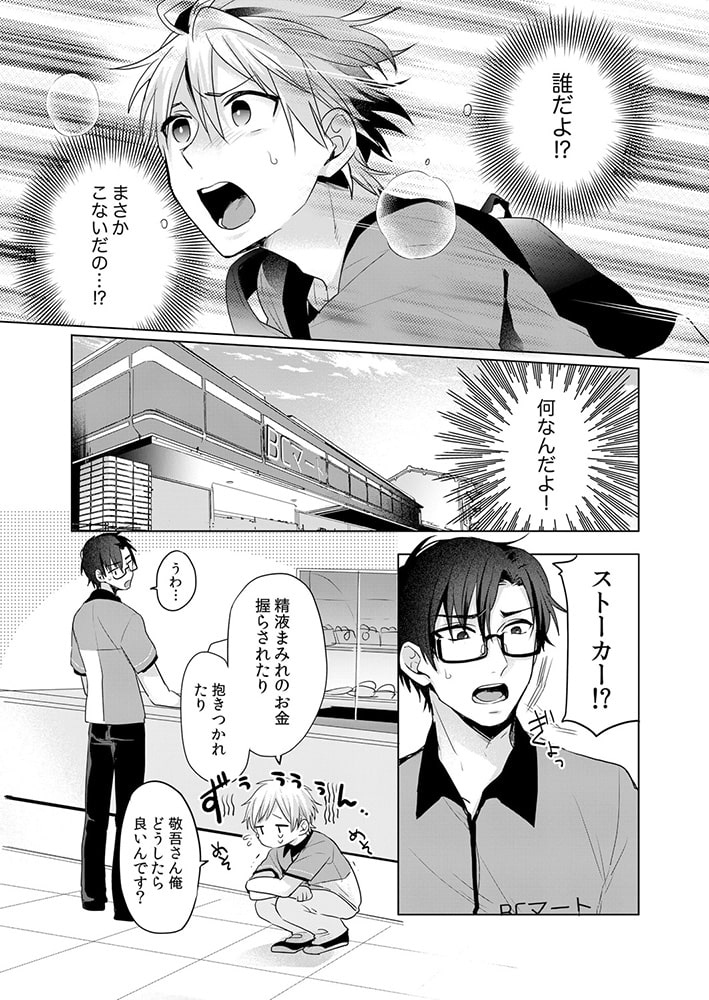 「お尻の奥…っ熱いよ…!」ノンケなのに感じて悶えてしまう体…豹変した店長にお尻を弄られメスイキ調教…!?――コンビニでアルバイトを始めた学生の佐倉ハルキ。店長の敬吾に助けられ支えてもらいながらバイトにも慣れてきたある日、いつものように夜勤を行っていると不審な男にトイレに押し込まれてしまい…!?あわやというところで敬吾に助けられるが、いつも優しいはずの敬吾の瞳は仄暗くギラつき始めて…。どこをどんなふうに触られたのか、敬吾に聞かれ答えると敬吾の手が佐倉の体をまさぐり始め…!?「こんなに乱れちゃって悪い子だね」と微笑む敬吾に耳元で囁かれながら乳首を摘ままれ、前を舐められ…。後ろのアナにまで指を挿れられてるのになんで俺、興奮しちゃうんだ…?「いれてほしい?」と熱いモノが淫乱なお尻にあてられて…そのまま一気に奥まで…!?腹黒メガネ男子×健気なほだされ系男子の激しめ執着H!!