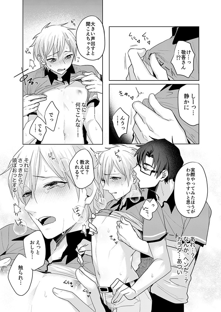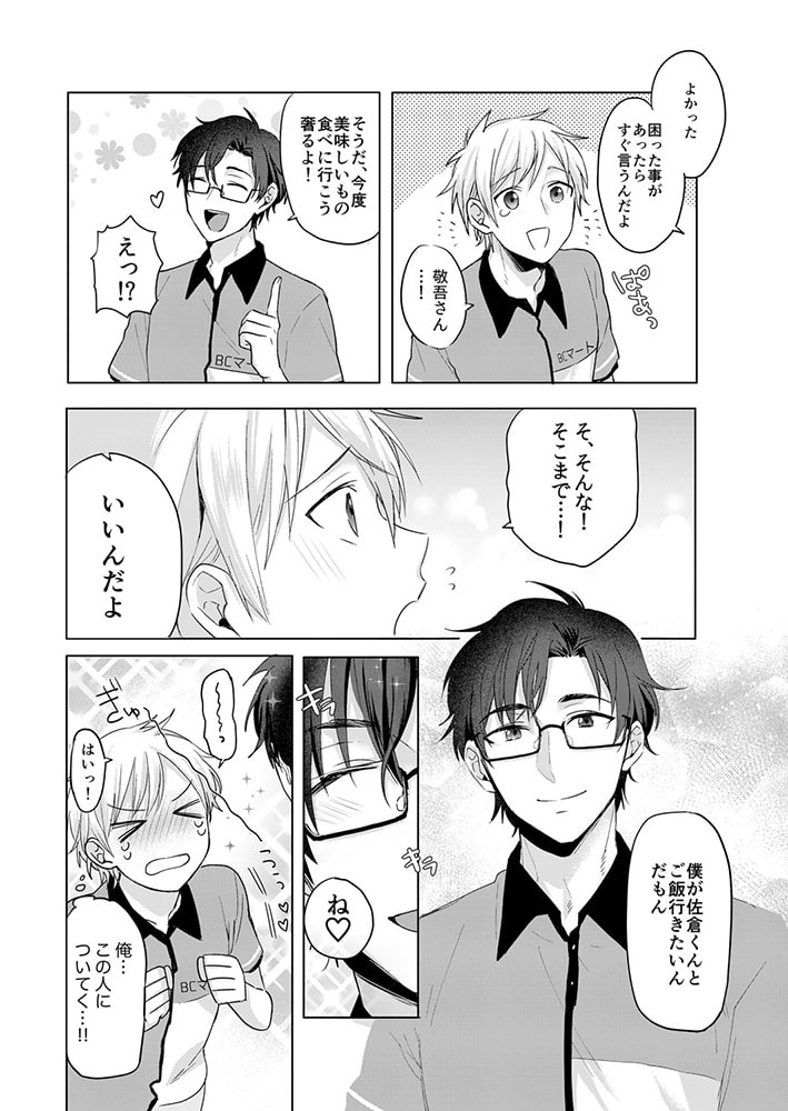 「お尻の奥…っ熱いよ…!」ノンケなのに感じて悶えてしまう体…豹変した店長にお尻を弄られメスイキ調教…!?――コンビニでアルバイトを始めた学生の佐倉ハルキ。店長の敬吾に助けられ支えてもらいながらバイトにも慣れてきたある日、いつものように夜勤を行っていると不審な男にトイレに押し込まれてしまい…!?あわやというところで敬吾に助けられるが、いつも優しいはずの敬吾の瞳は仄暗くギラつき始めて…。どこをどんなふうに触られたのか、敬吾に聞かれ答えると敬吾の手が佐倉の体をまさぐり始め…!?「こんなに乱れちゃって悪い子だね」と微笑む敬吾に耳元で囁かれながら乳首を摘ままれ、前を舐められ…。後ろのアナにまで指を挿れられてるのになんで俺、興奮しちゃうんだ…?「いれてほしい?」と熱いモノが淫乱なお尻にあてられて…そのまま一気に奥まで…!?腹黒メガネ男子×健気なほだされ系男子の激しめ執着H!!
