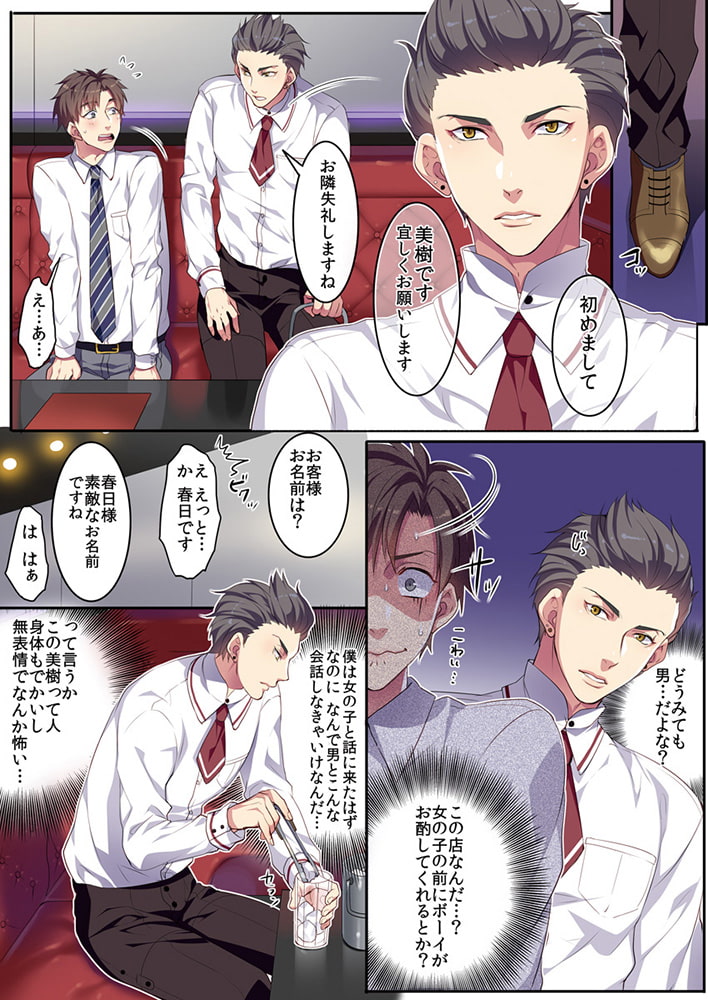 【うちの店本当は胸だけなんですけど…春日様だけ特別ですよ…?】なんだこれ!すべすべして…触り心地最高…!――仕事で日々ストレスのたまったサラリーマン・春日が酔っぱらって夜の街を歩いていると、客引きに「巨乳のいい子いますよ♪」と勧誘される。お店のナンバーワン・美樹ちゃんが席についてくれることになり期待する春日。ところが現れたのはどう見ても男!不満ながらも、ちゃんと愚痴を聞いてくれる美樹と楽しい時間を過ごしていると、突然店内が暗くなりムーディーな曲が流れてきて…?え、美樹さんなんで服を脱いで…!?雄っぱいを触れって…?み、美樹さん…もしかして感じてるの…!?