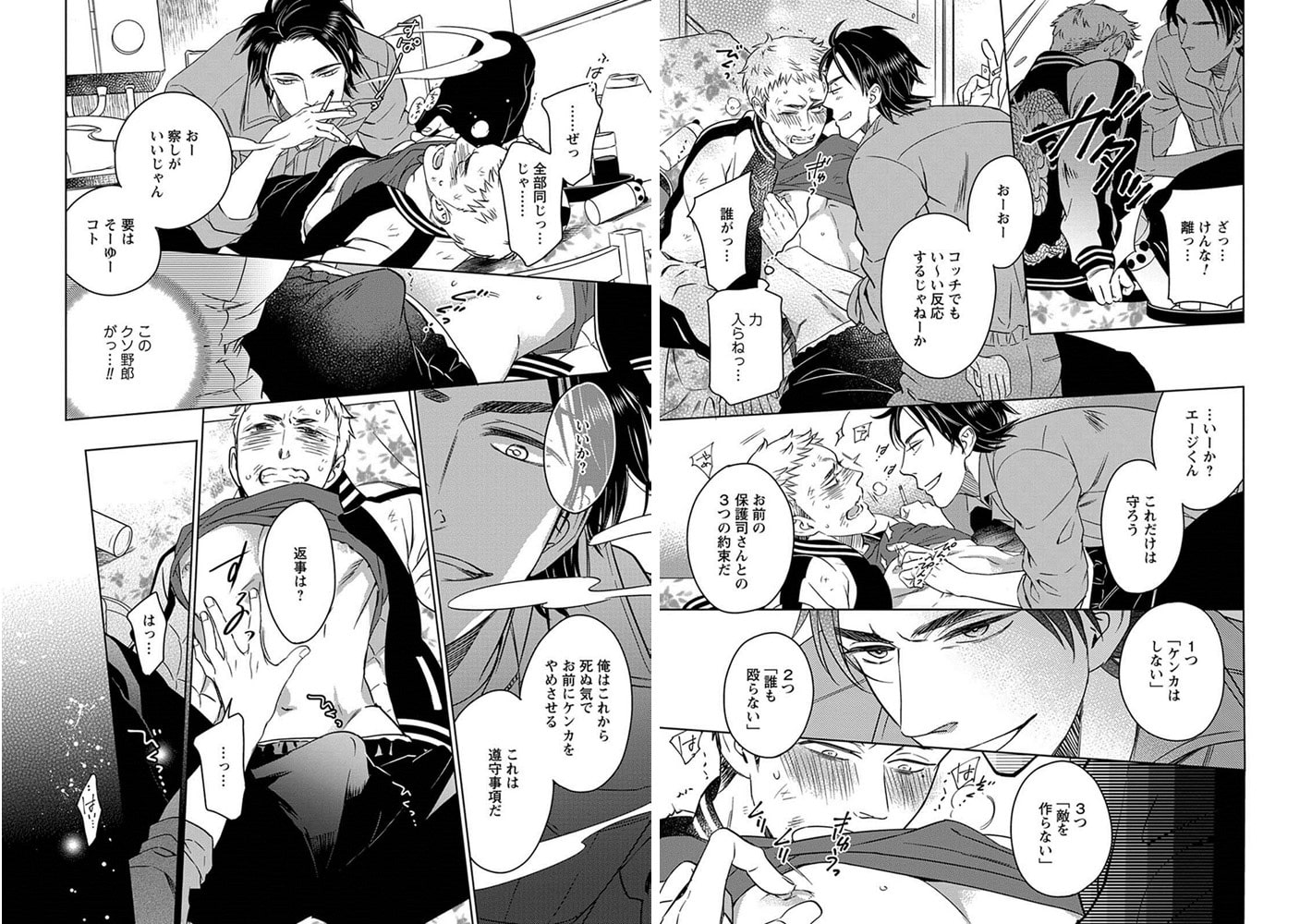 ケンカ三昧の日々を送るヤンキー・土佐はとうとう鑑別所へ送られて保護司がつくことになってしまった!おとなしく大人の言うことを聞く気がなかった土佐だが、好奇心から保護司を見に行くことに。保護司がいる鉄工所へ行ってみると柄の悪い従業員と衝突!!そのままけんかになるかと思われたその時、土佐の保護司の蓮木があらわれ、みんなが見ている前で土佐にお尻ぺんぺんの罰を与える!?お尻を叩かれているだけなのに土佐は今まで感じたことのない快感を得てしまい―…。蓮木もトロトロの甘い顔になる土佐に何かを感じてよりいじめたくなってしまう…。