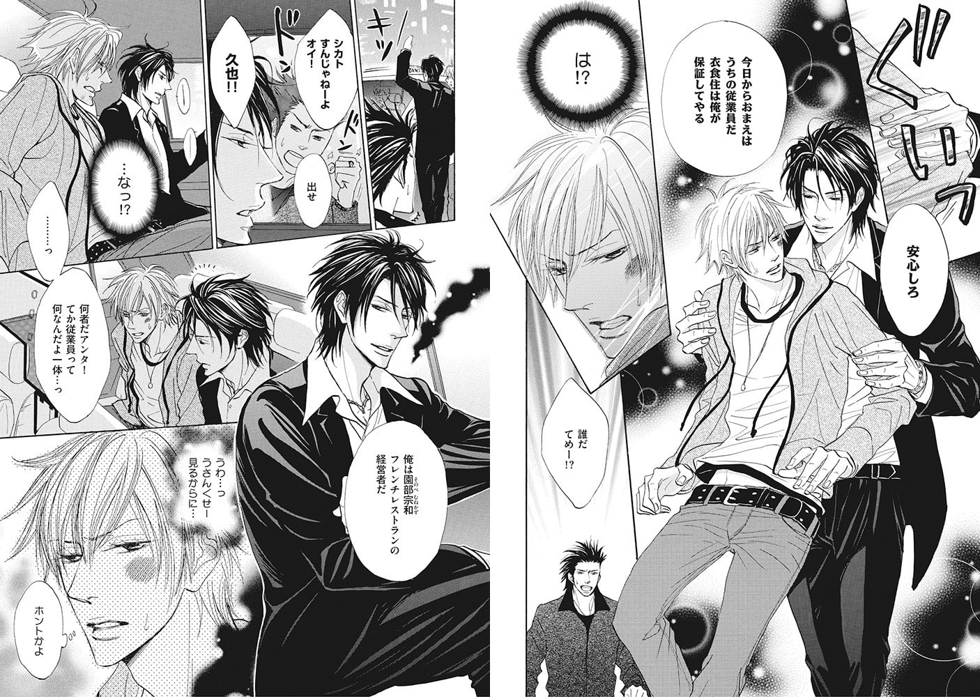 突然現れたエロオーラ全開なレストランオーナー・園部宗和に拾われた久也。家も職も無くしたばかりの久也は、宗和のレストランで働く代わりに、彼と同居する事になるのだが…?