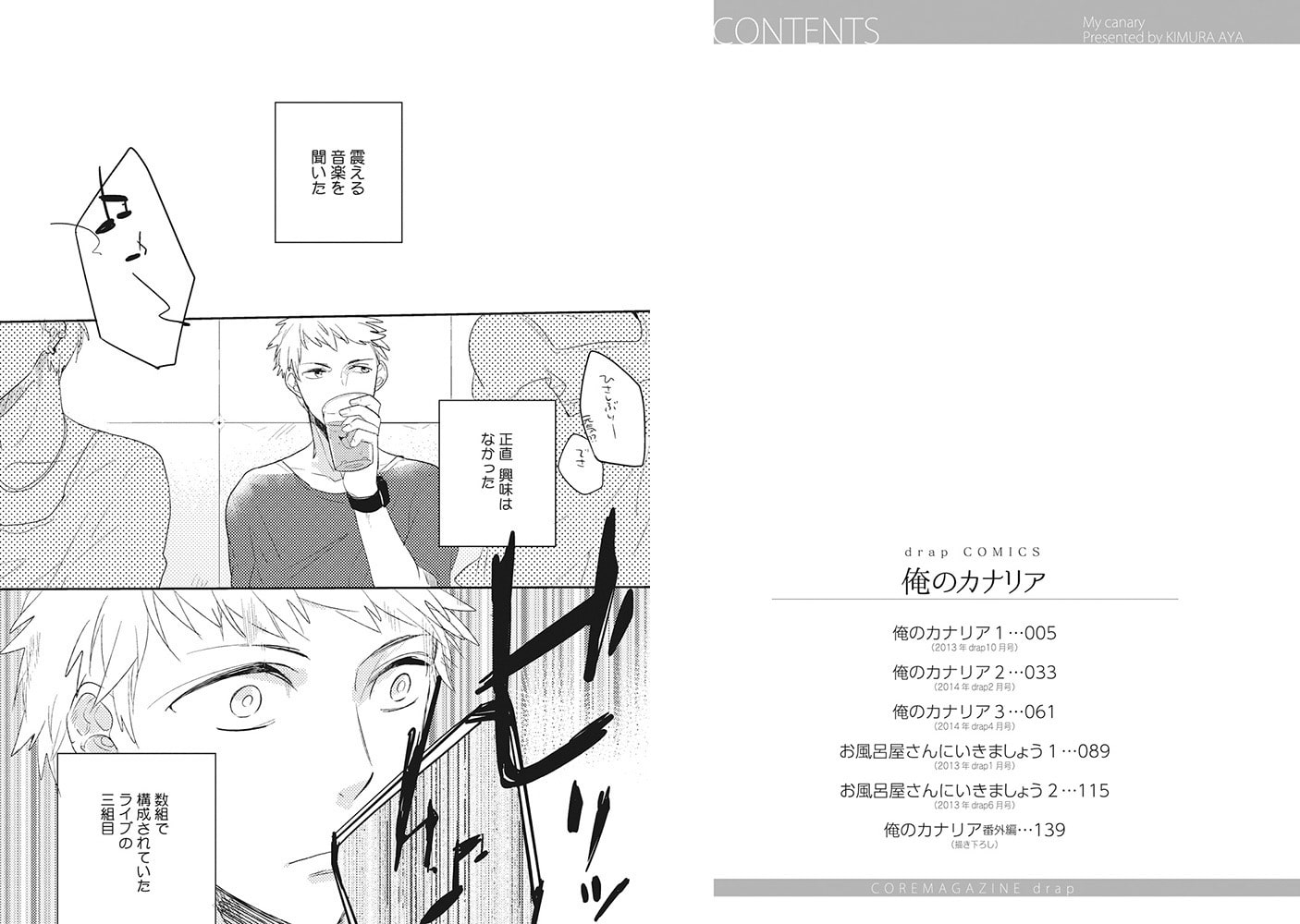 【彼に、彼の歌声に、恋をした 俺だけのために歌って、啼いてよ――】 バンドマンの一は、憧れのヴォーカリスト・クロと同居することに。可愛い外見とは裏腹に、全てに無関心なクロ。そんな彼が女を連れ込んでいるのに遭遇した一は、激しい嫉妬に駆られ、彼を抱いてしまい――? 描き下ろし、銭湯を舞台にしたハートフル・ラブ「お風呂屋さんにいいきましょう」も同時収録?