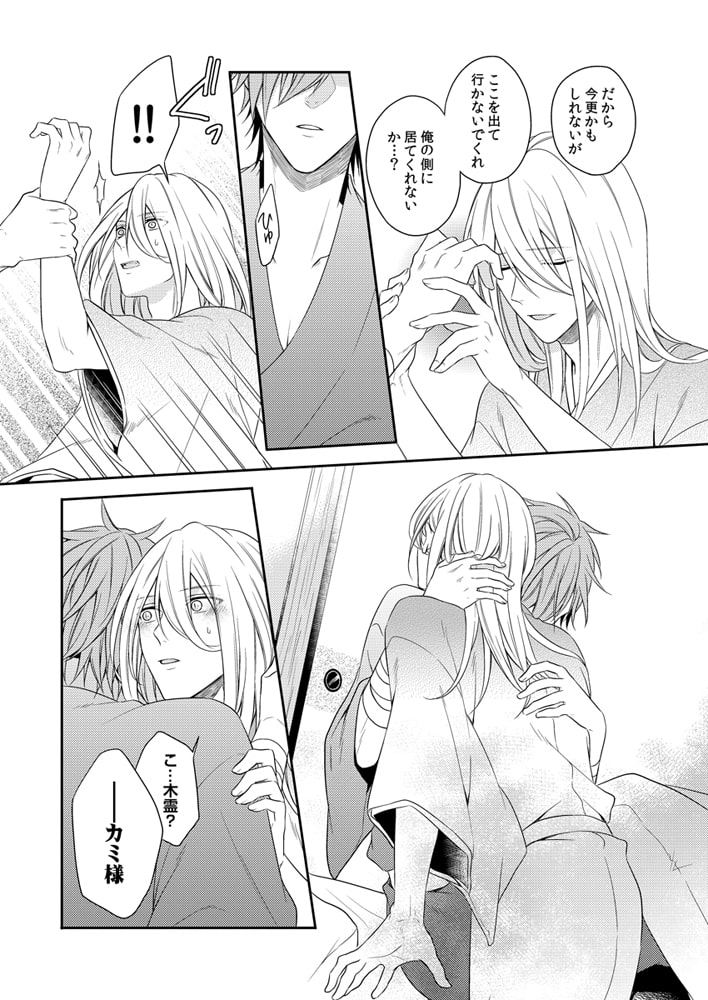 「僕はもう、子供じゃないんだよ」――その山には昔から“ヒスイ”と呼ばれる神様が住まい、ずっと山を見守り続けていた。ある雨の日、ヒスイは山に捨てられたヒトの赤ん坊を拾い、育てる事にした。やがて月日が過ぎ、立派な青年に育ったその子、“木霊”は、ヒスイの身の回りの世話をするようなる。しかし木霊はいつの日からか育て親であるヒスイを「父」とは呼ばなくなっていた…。昔はヒスイの後ろをついて回っていた幼子――しかし今では、ヒスイの背丈も超え、彼を見る眼差しにも熱を帯びるようになり…そして遂には…いつまでも子供だと思っていたのに――ヒトと神、生きる時間が異なる二人の想いが、交差する――