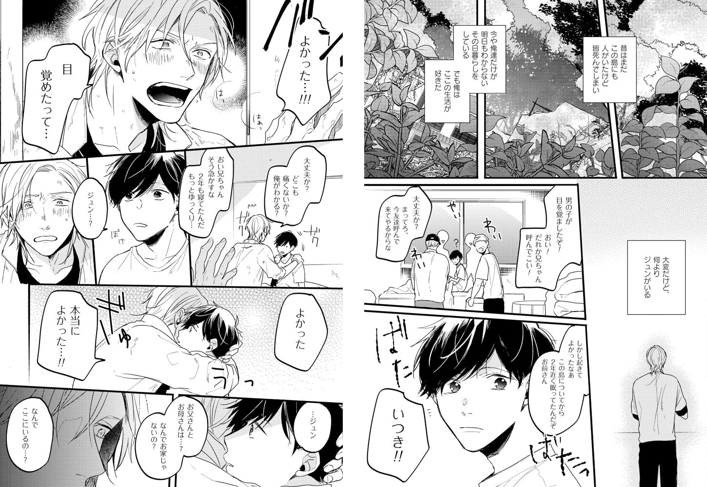 荒廃し人類が住むことが困難になった地球。事故により2年も眠っていたいつきは、幼い頃からのシッターであるジュンと、辛うじて緑の残る島に二人きりで暮らしている。自分が何故事故に遭ったのか覚えていないいつき。大好きなジュンさえいれば良かったが、枯渇していく資源には焦り始めていた。ある日、偶然見つけた謎の機体の通信機から声がするのに気づく。……自分たち以外にも地球に人がいるかもしれない。助けを呼べたらずっと二人で生きていけると喜ぶいつきとは対照的に、ジュンの反応は鈍く…。