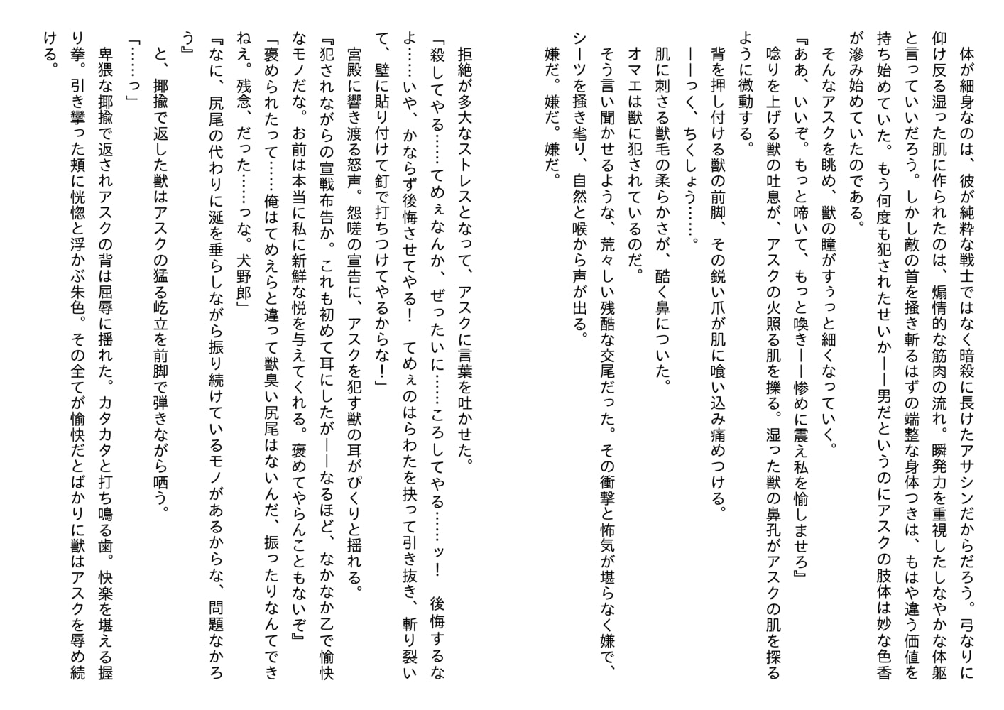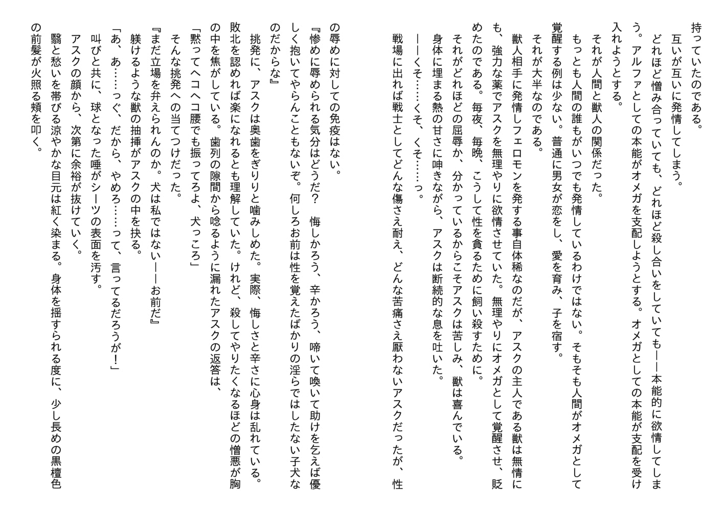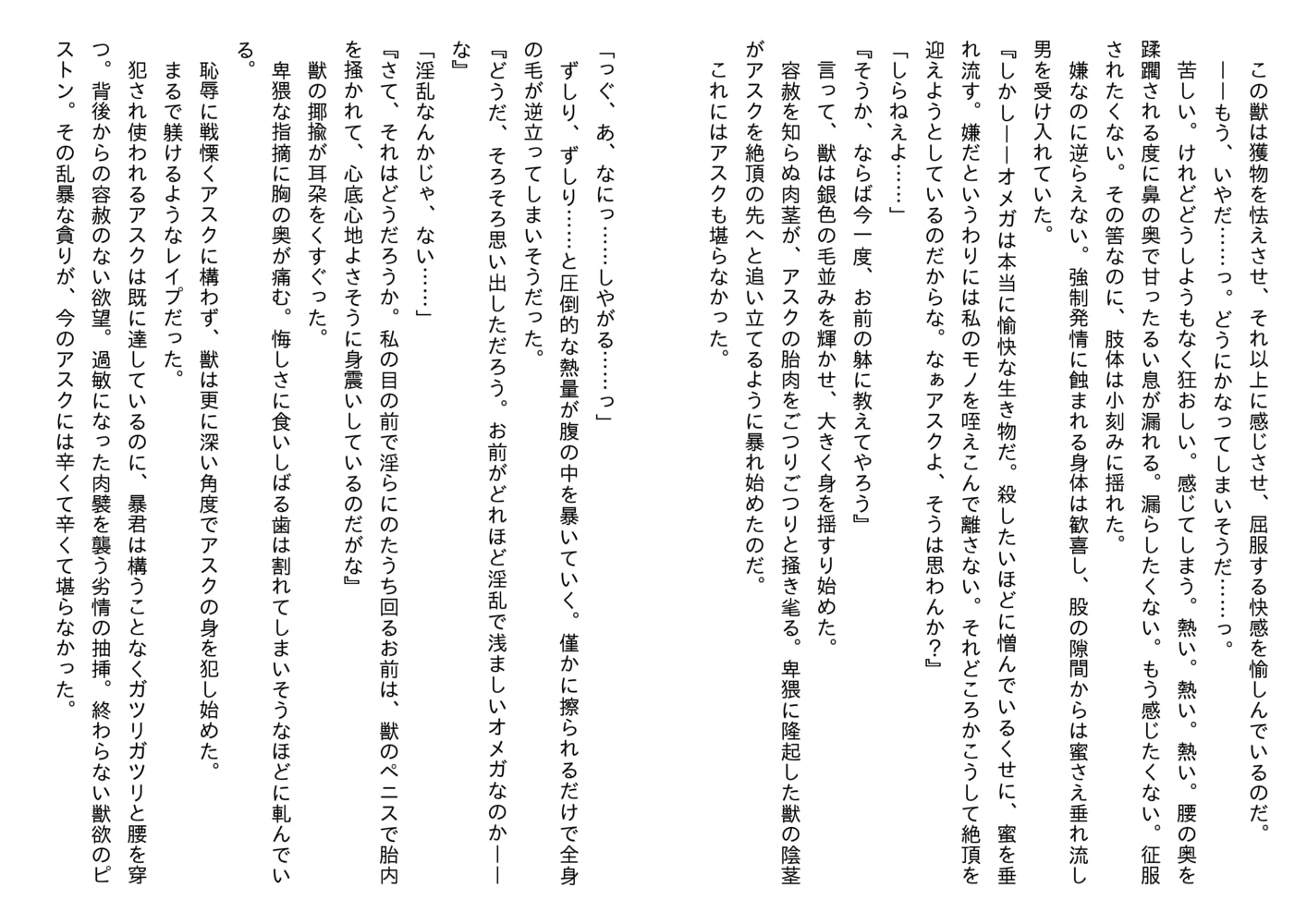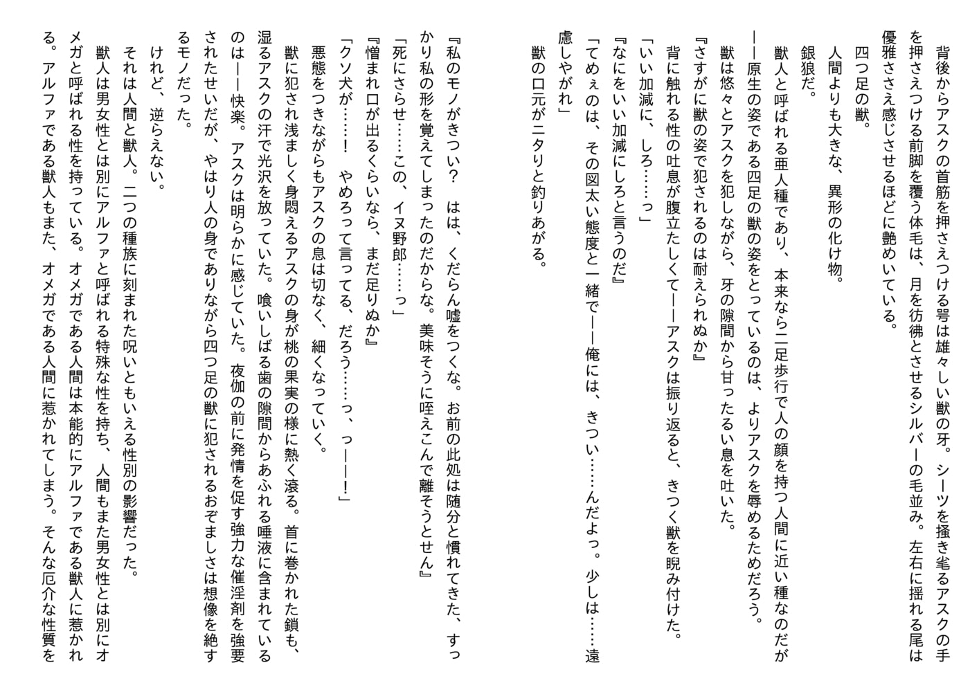 獣人、人間、どちら側にも属せずに孤独に苛まれるアスクだったが、マルコスとの夜を繰り返すうちにそこには歪な絆が生まれ始め……?