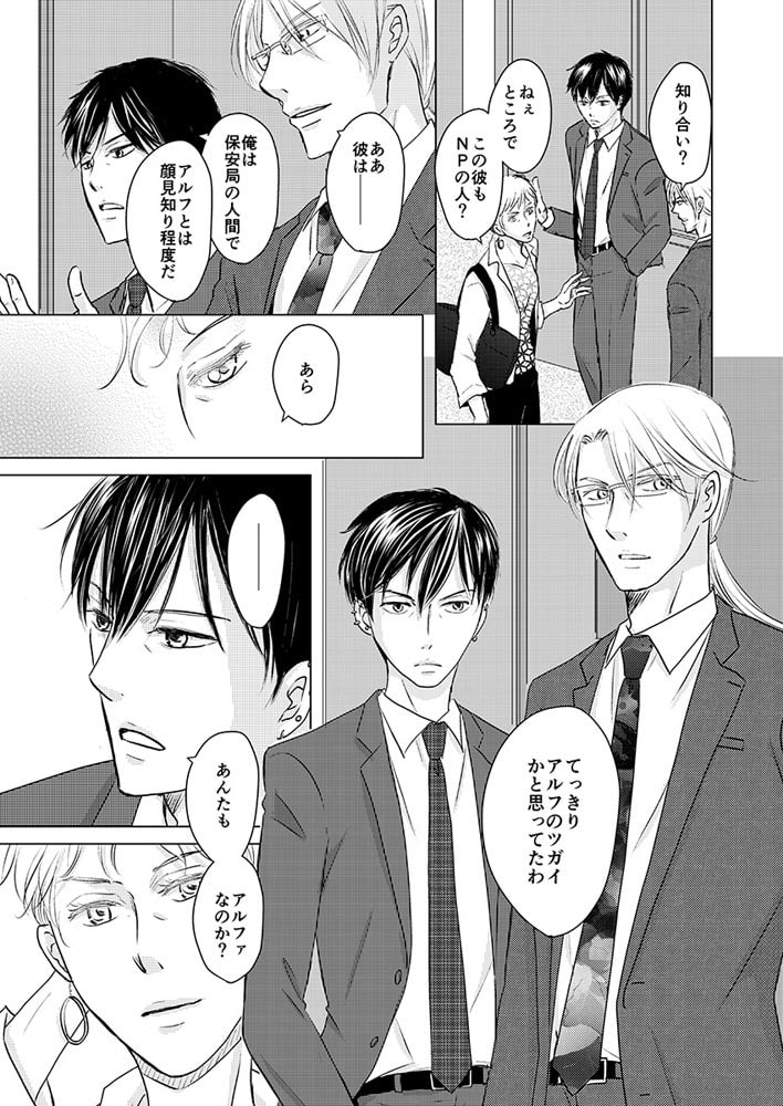 コンビを組んで犯罪組織と戦うショージとアルフ…ショージは【オメガ】ながらも、努力の末に特殊捜査官に所属するが、突然体を襲う「発情」は抑制剤を飲んでいても止める事が出来なかった。ショージの後輩にあたるアルフは彼の発情を抑えることの出来る唯一の【アルファ】だったが、その性質上、一度交尾を始めると、お互いが達するまで止める事は出来ない…お互いを求め合う姿はまるで獣――後輩と先輩、オメガとアルファ…ばら撒かれた糸の様な複雑な感情は、組織と言う閉鎖された空間の中でどの様に絡み合っていくのか…